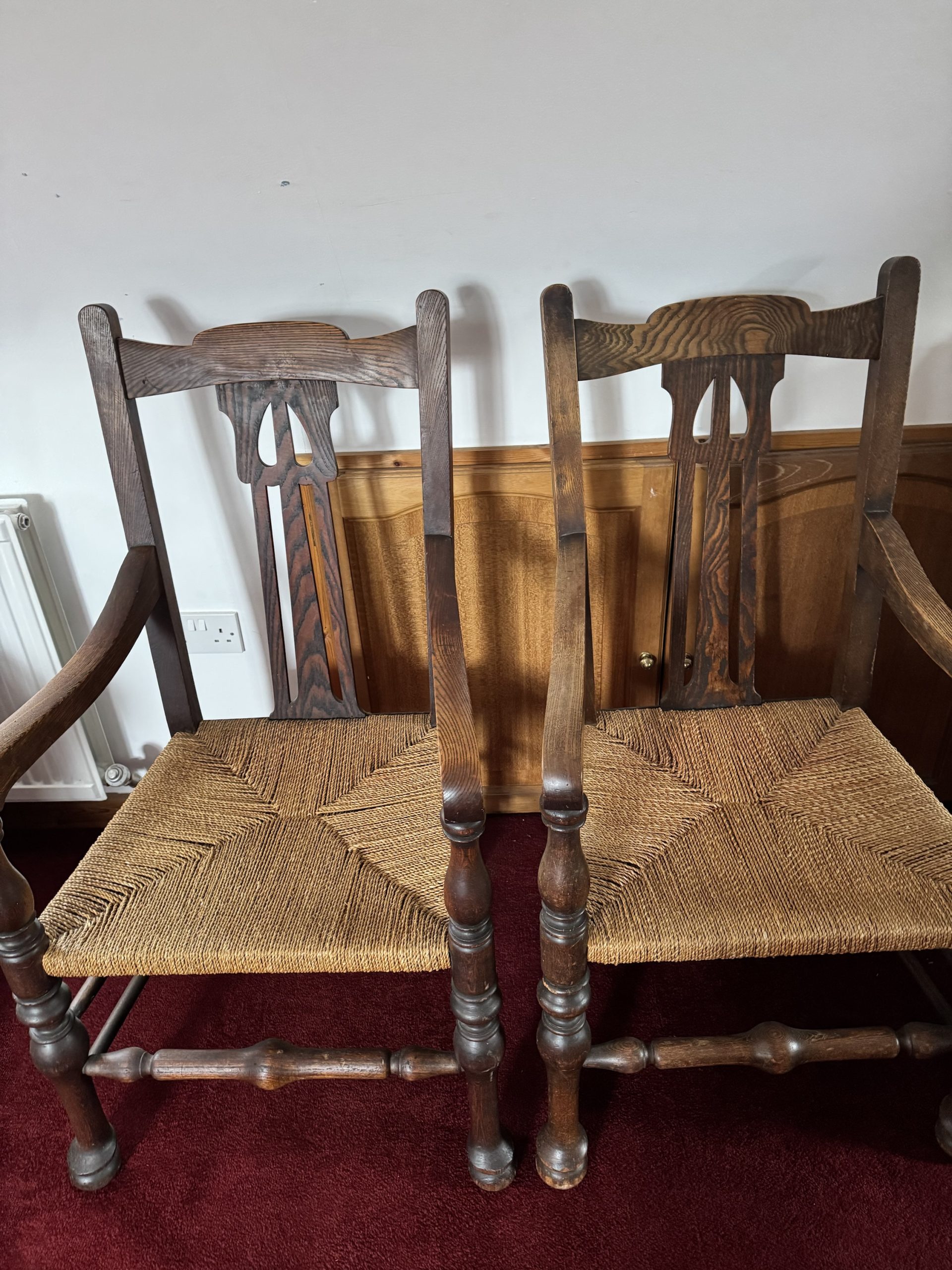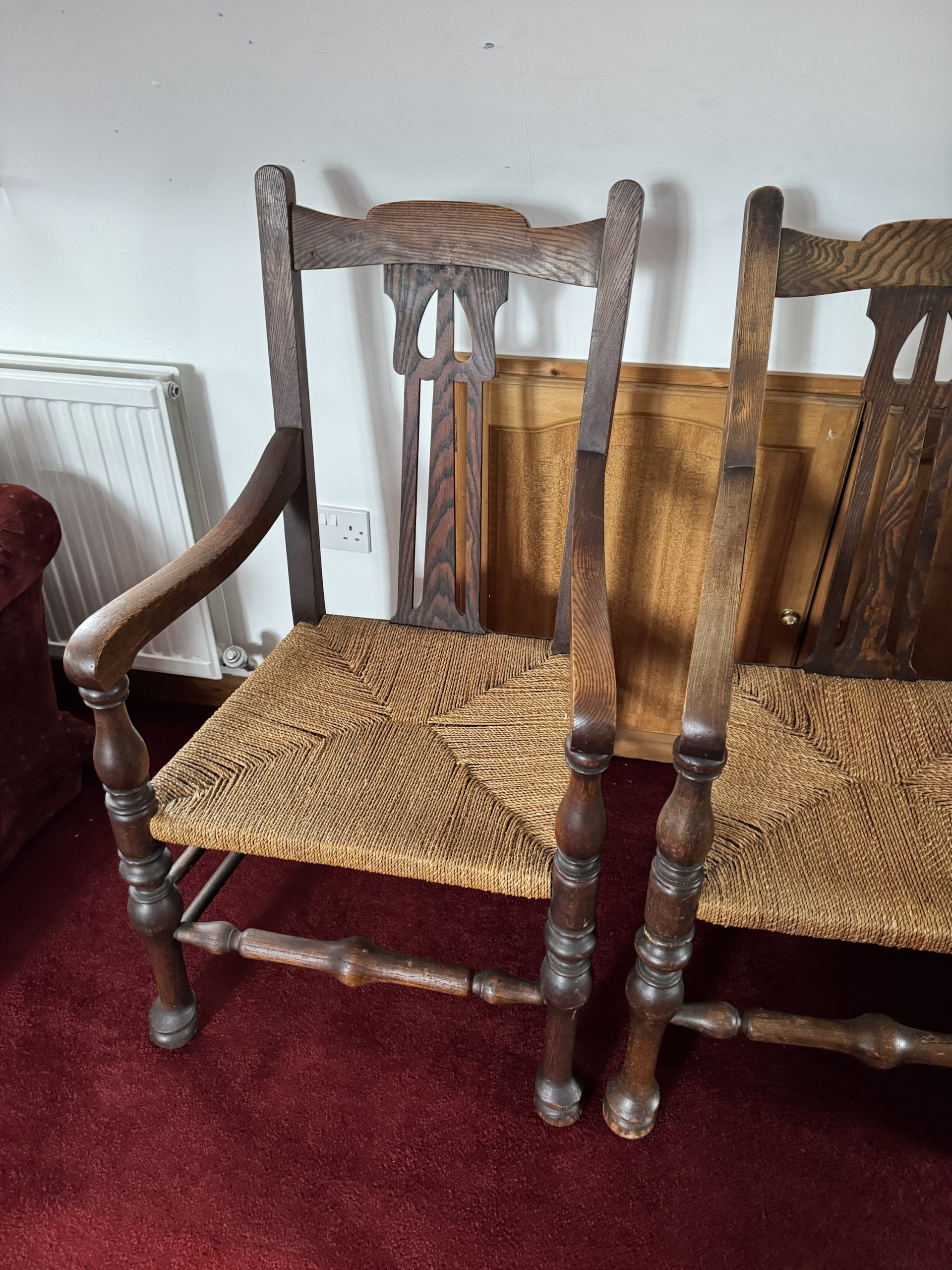 Be the first to review “A pair of antique American rush seated chairs”