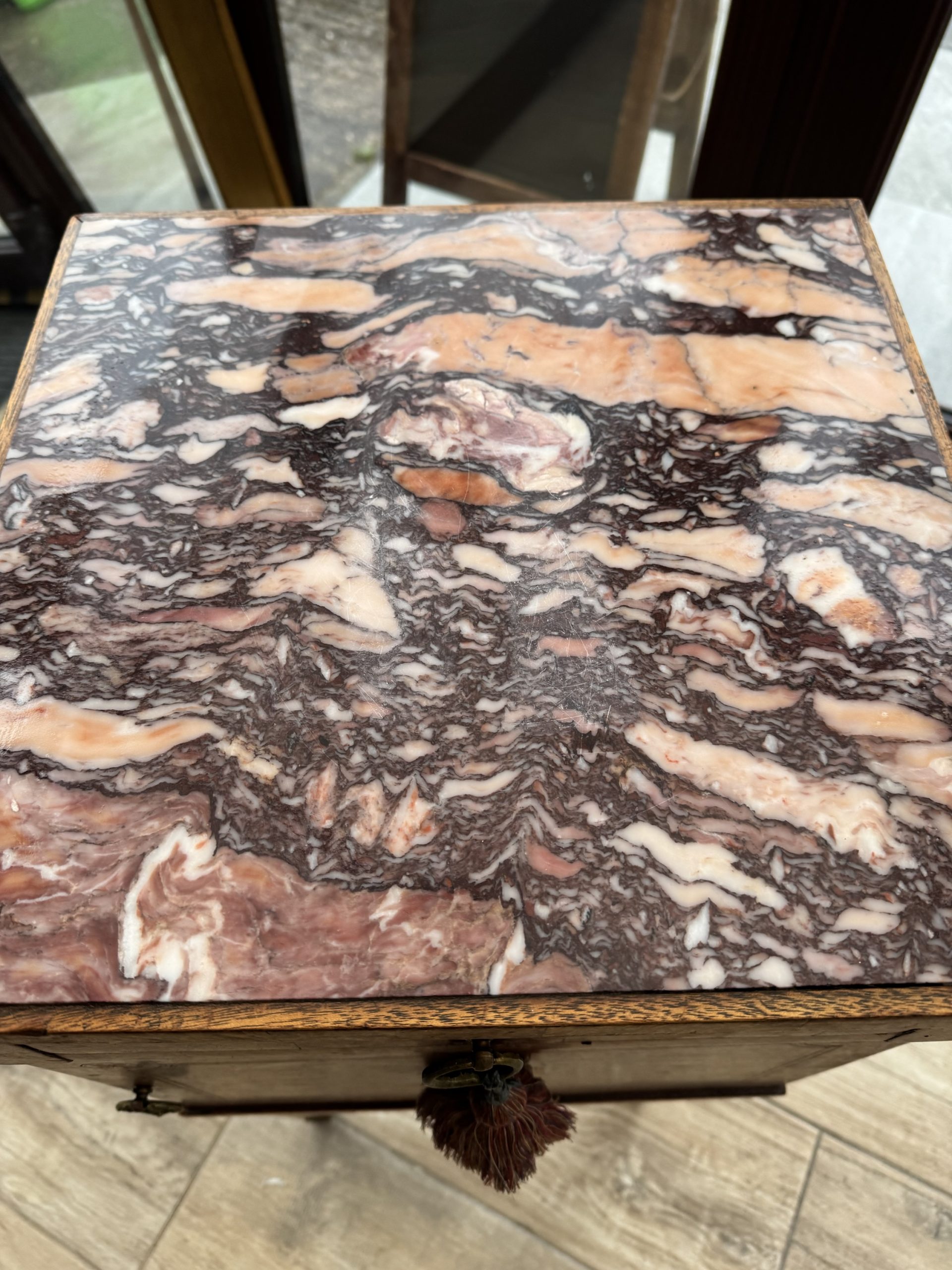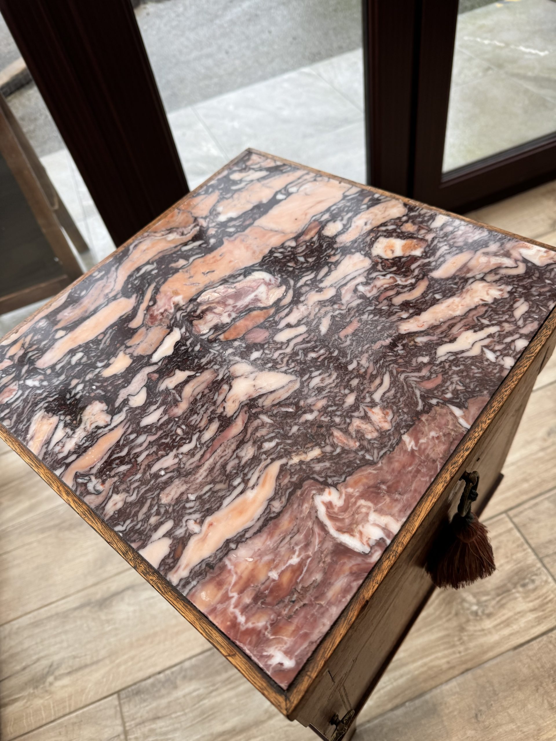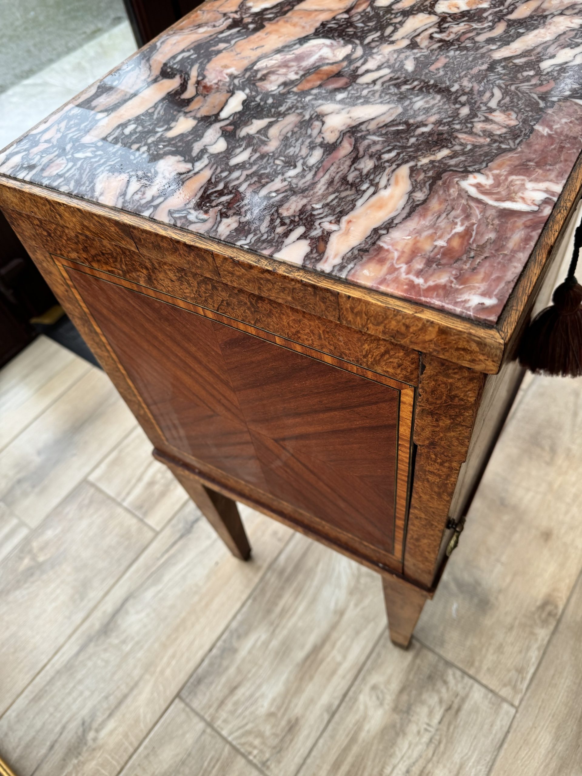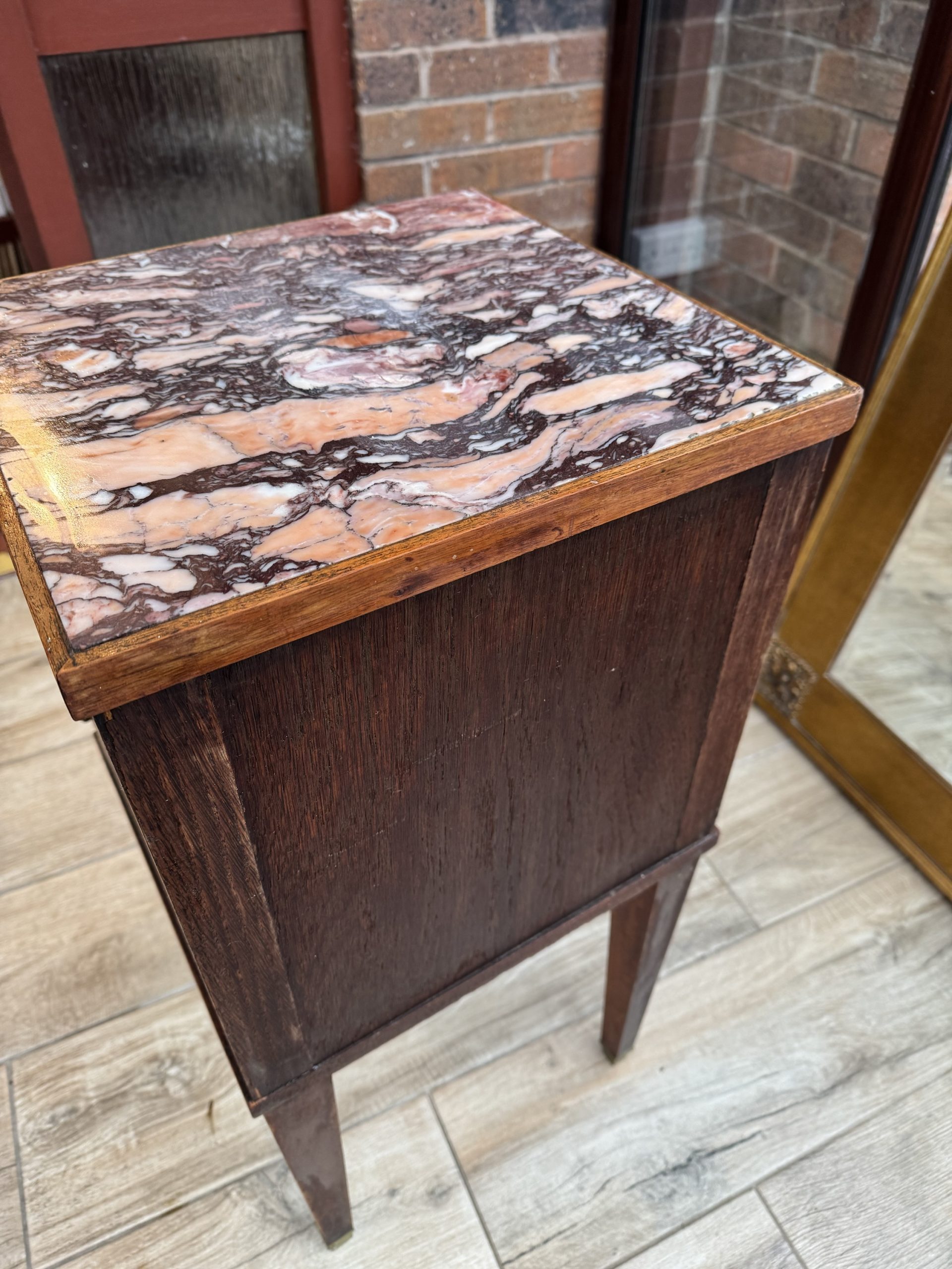 Late 18th century Louis XVI style pink marble topped nightstand. Beautifully crafted piece of French furniture with its delicate inlayed decoration and high finish.