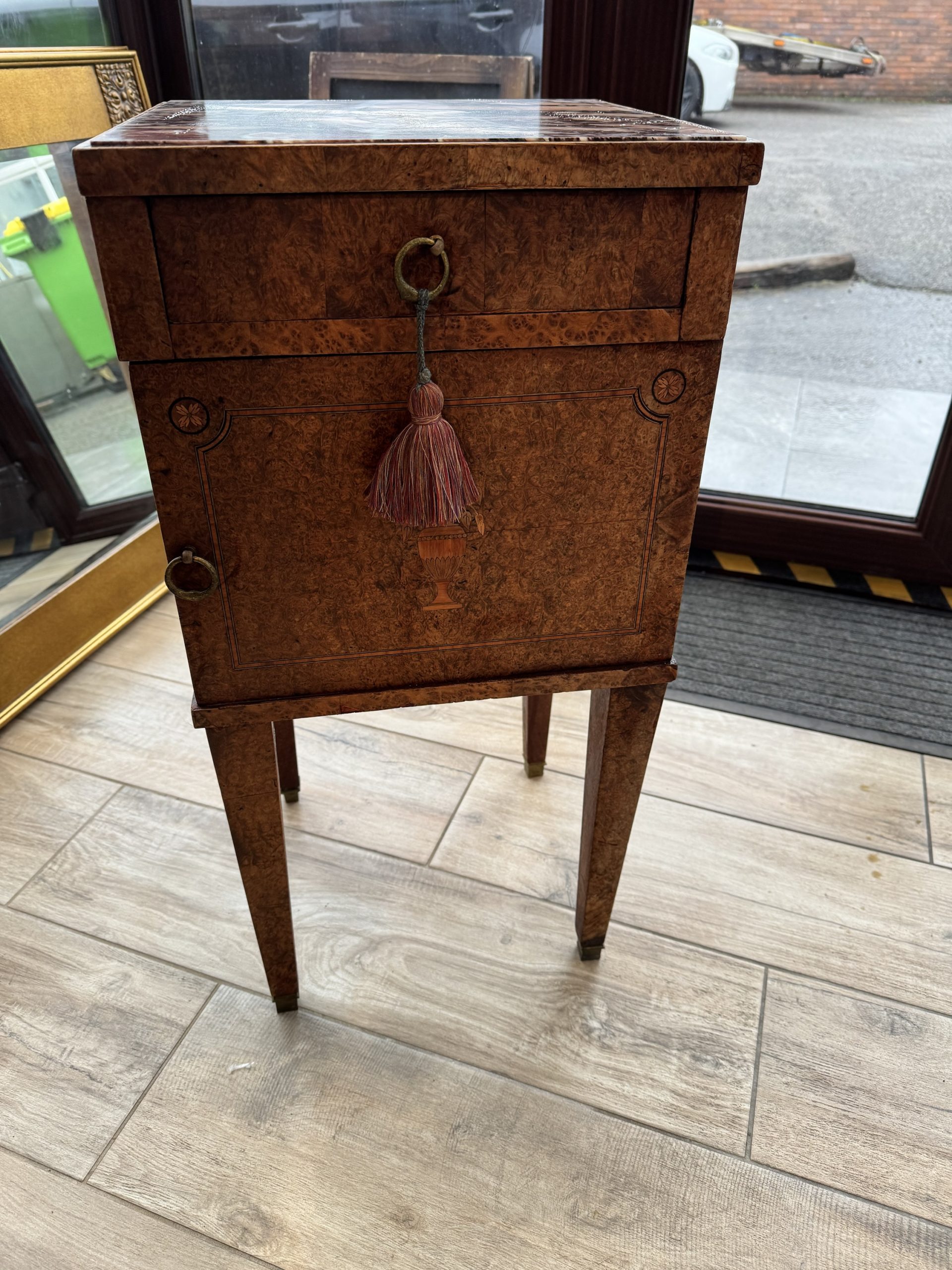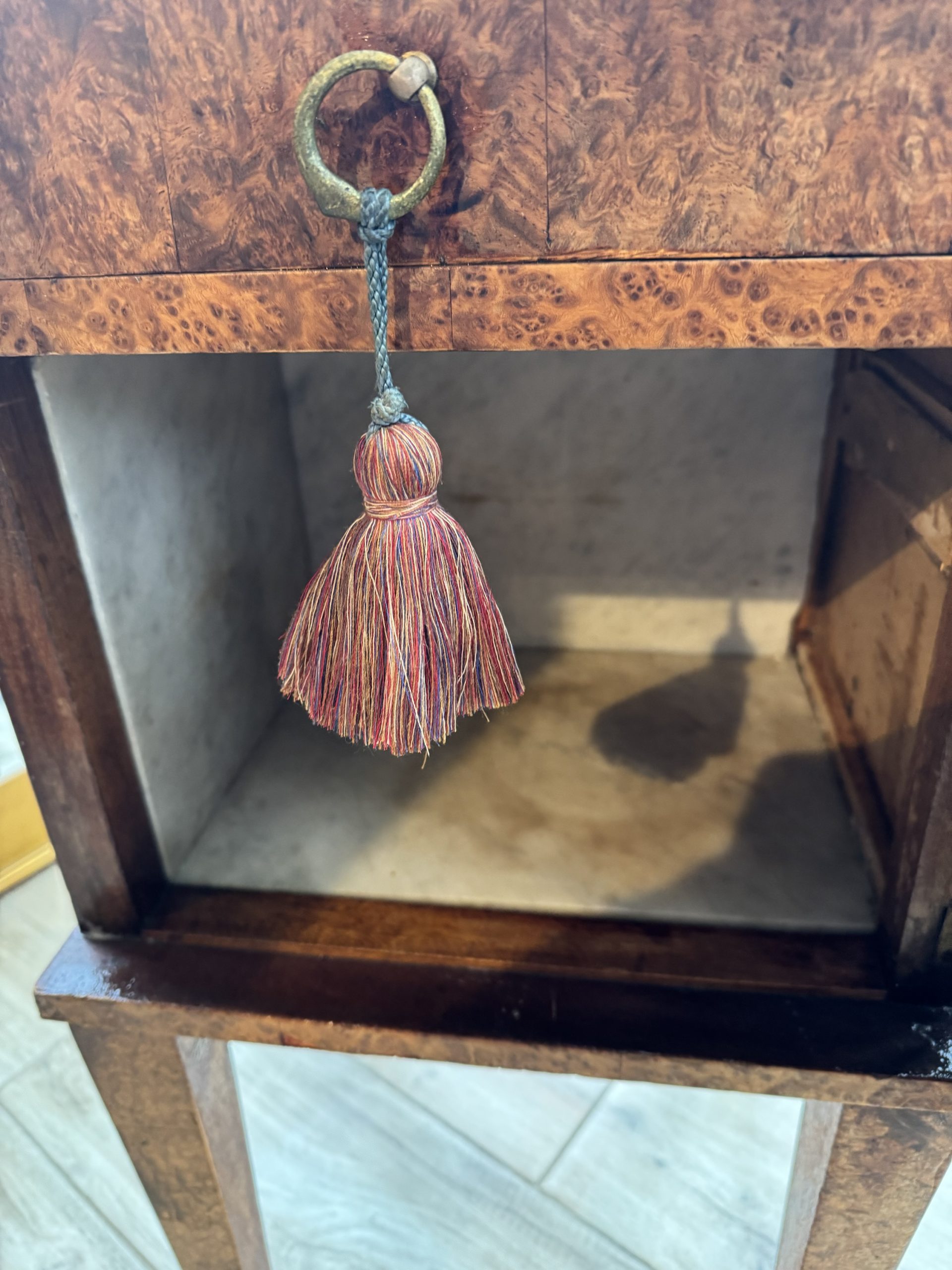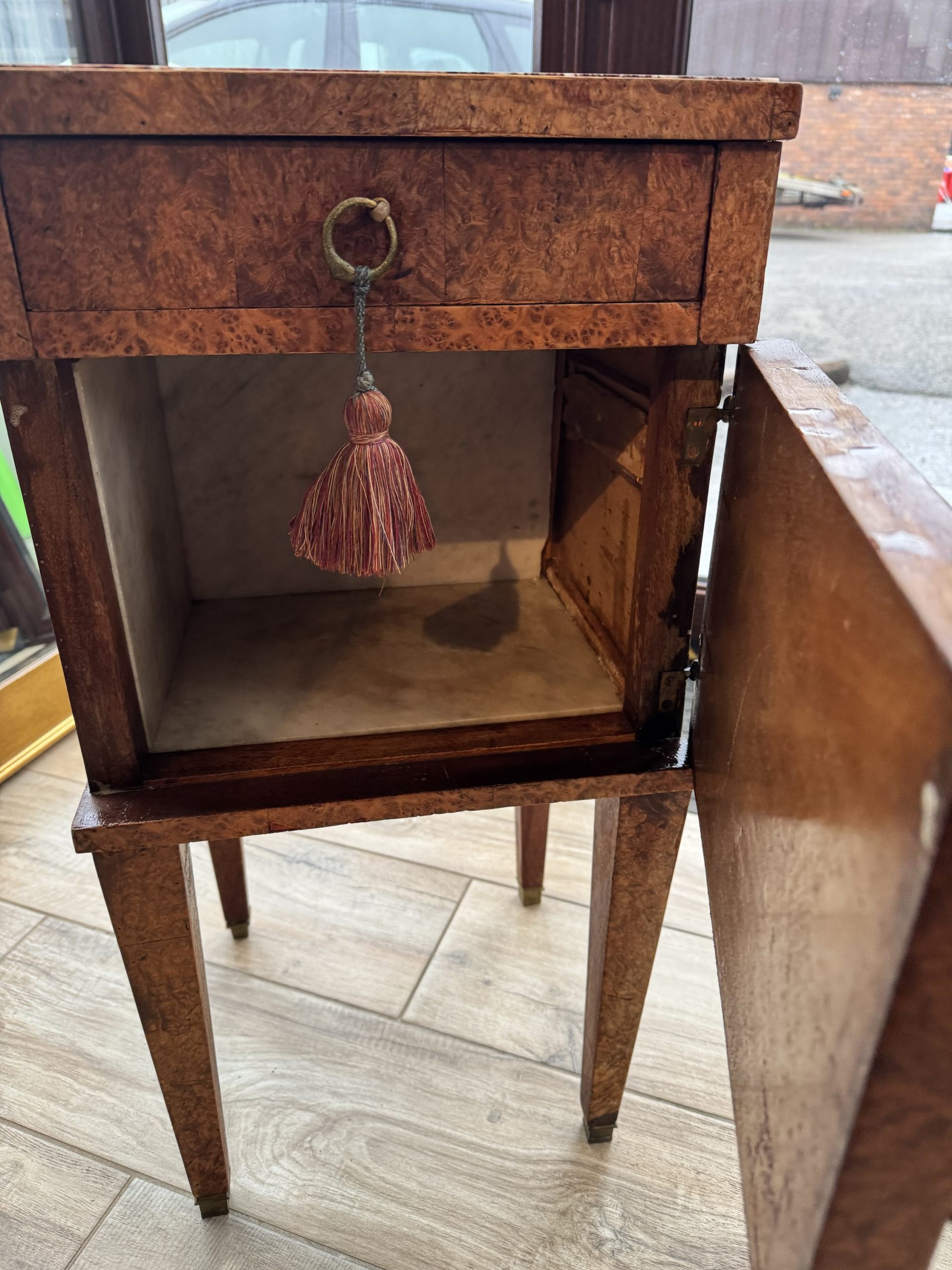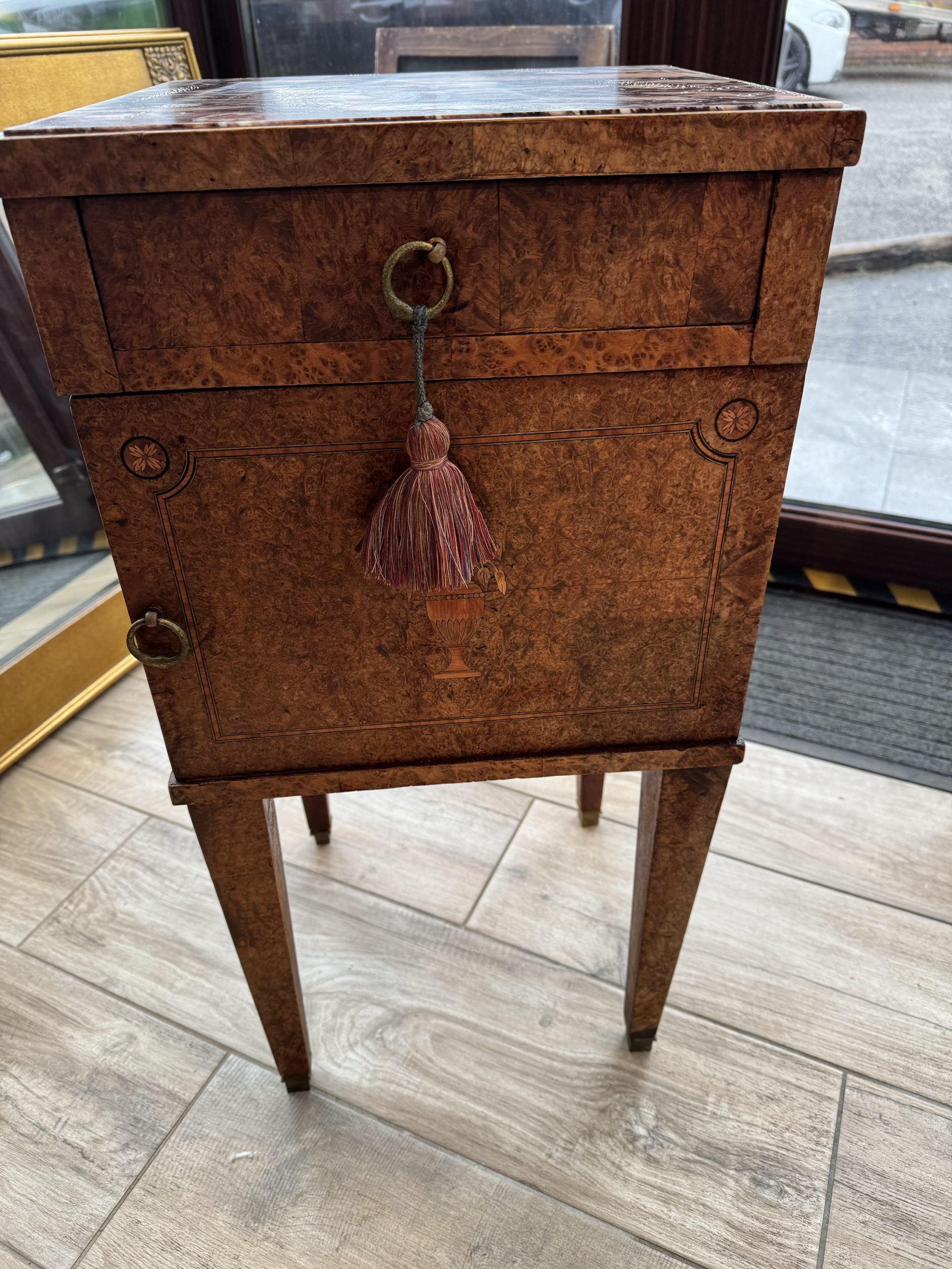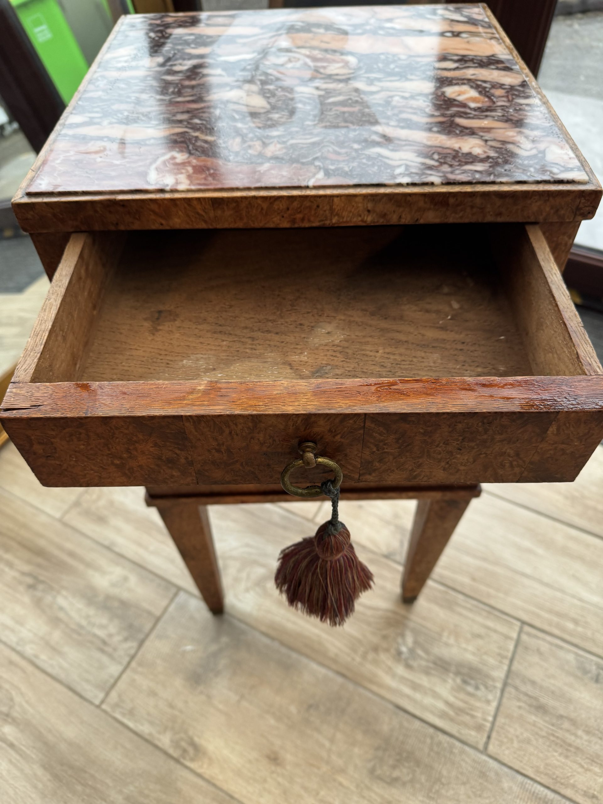Late 18th century Louis XVI style pink marble topped nightstand. Beautifully crafted piece of French furniture with its delicate inlayed decoration and high finish.