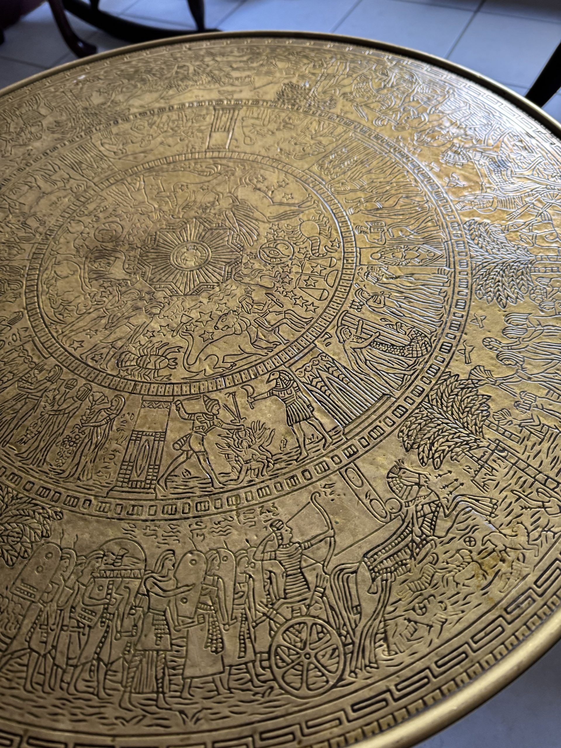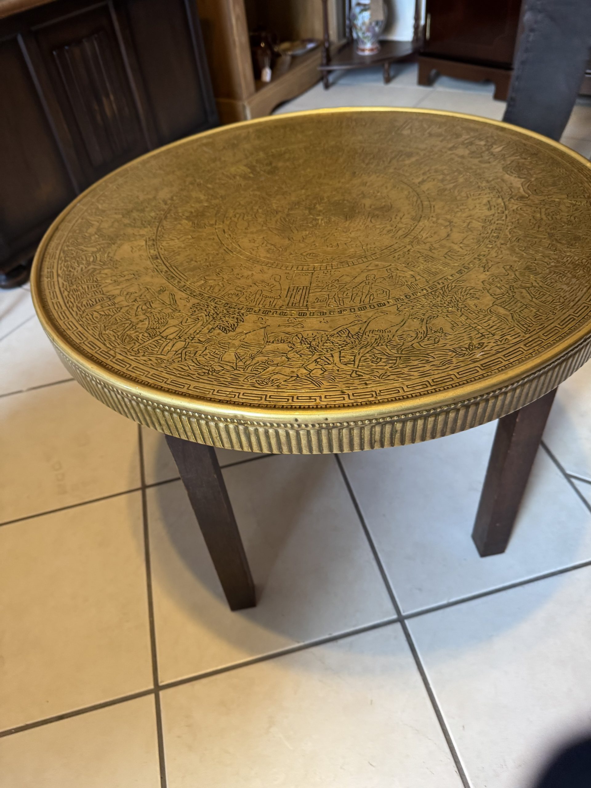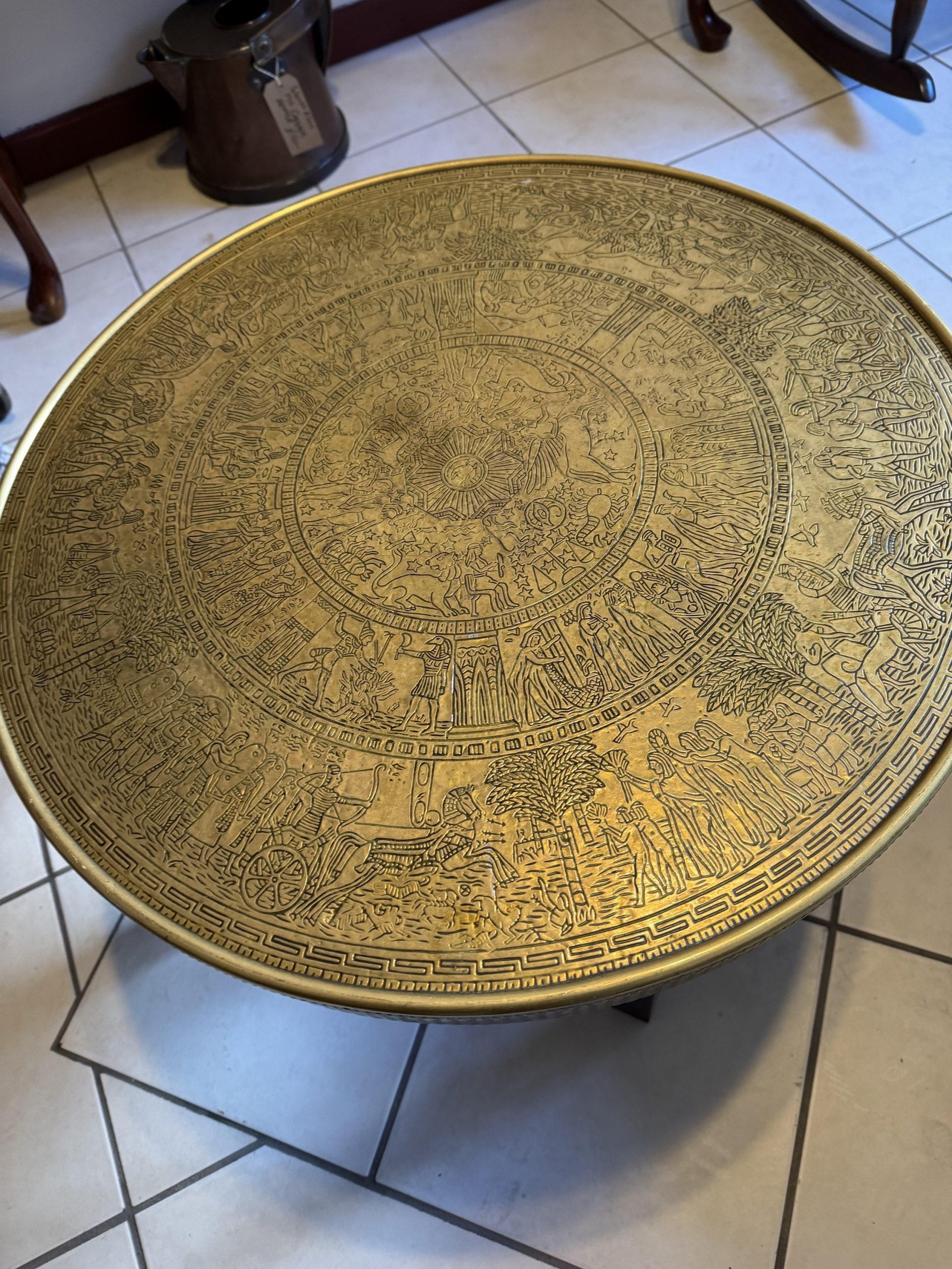 Circa 1900-1920 Egyptian beautifully engraved brass topped occasion table.