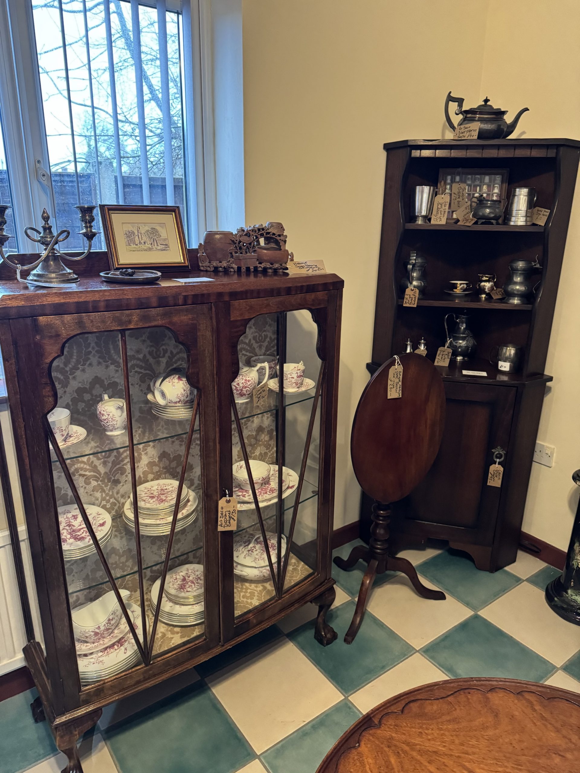lovely display cabinet with glass doors.