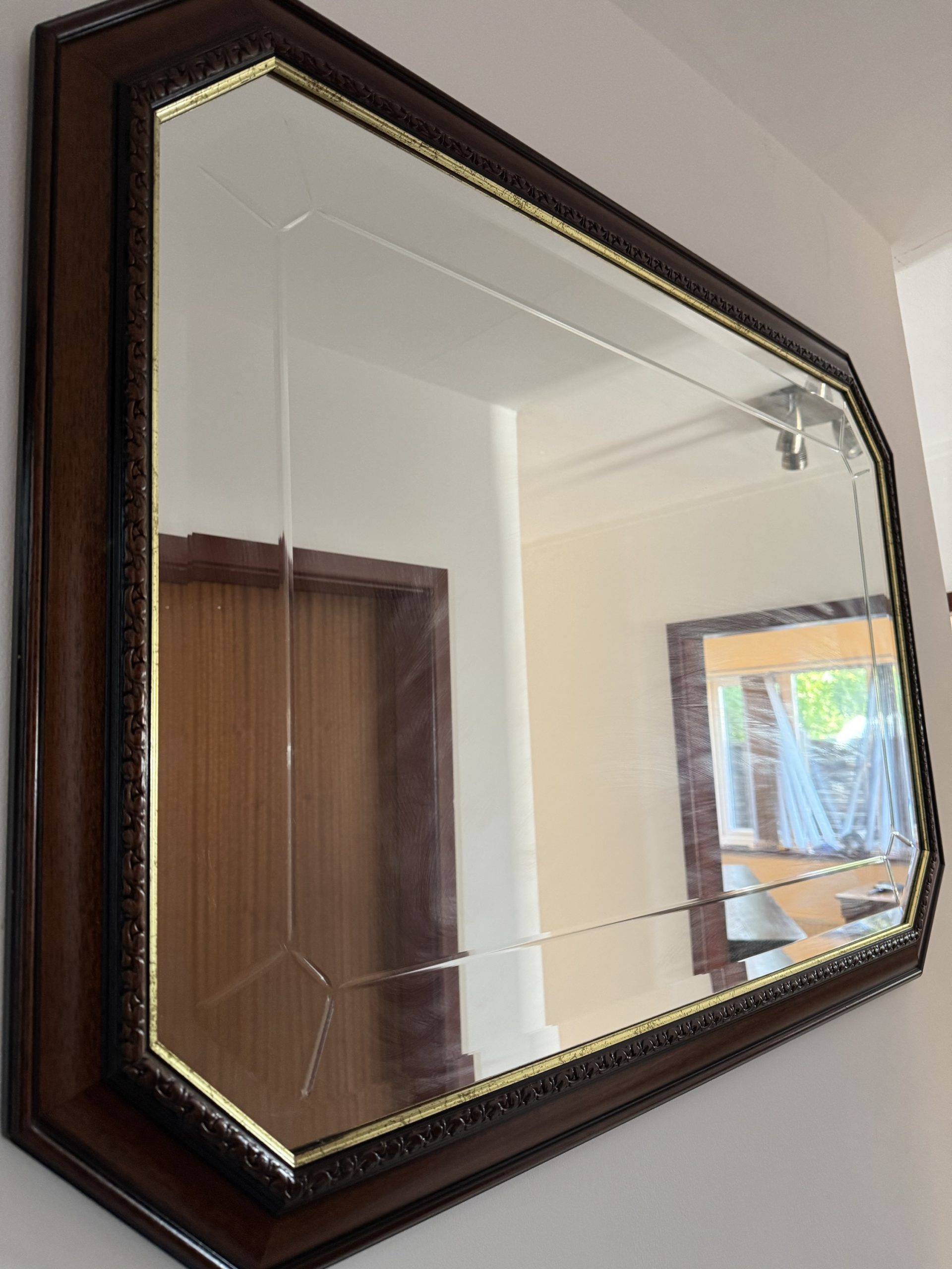 Large antique Edwardian wall mirror dating early 1900’s glass in a wooden frame exudes a classic and elegant style fitting in any room of your home.