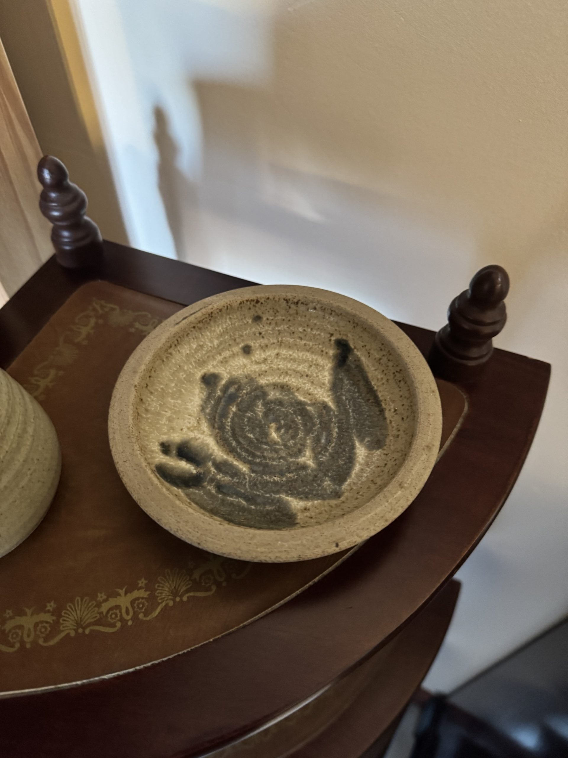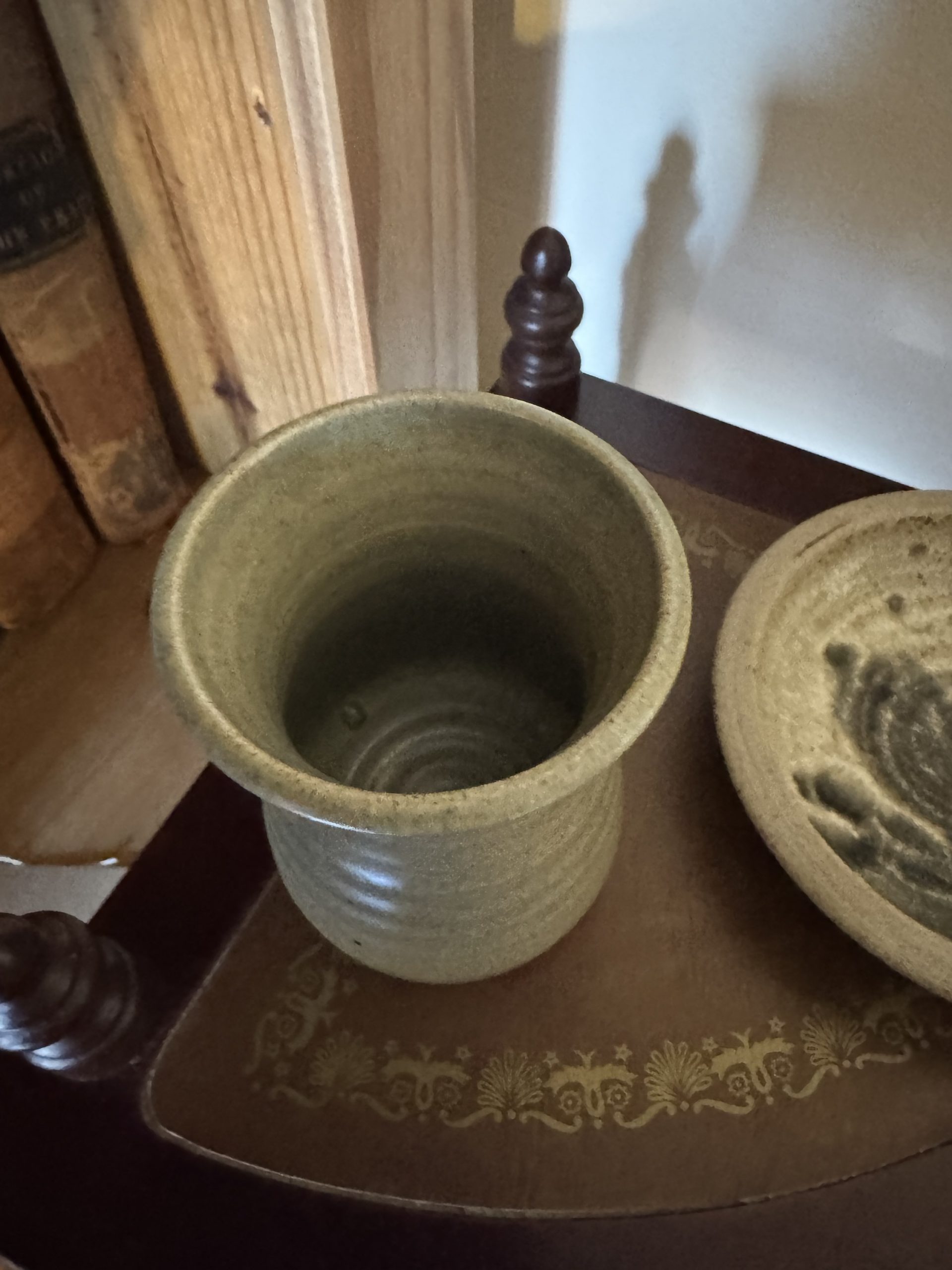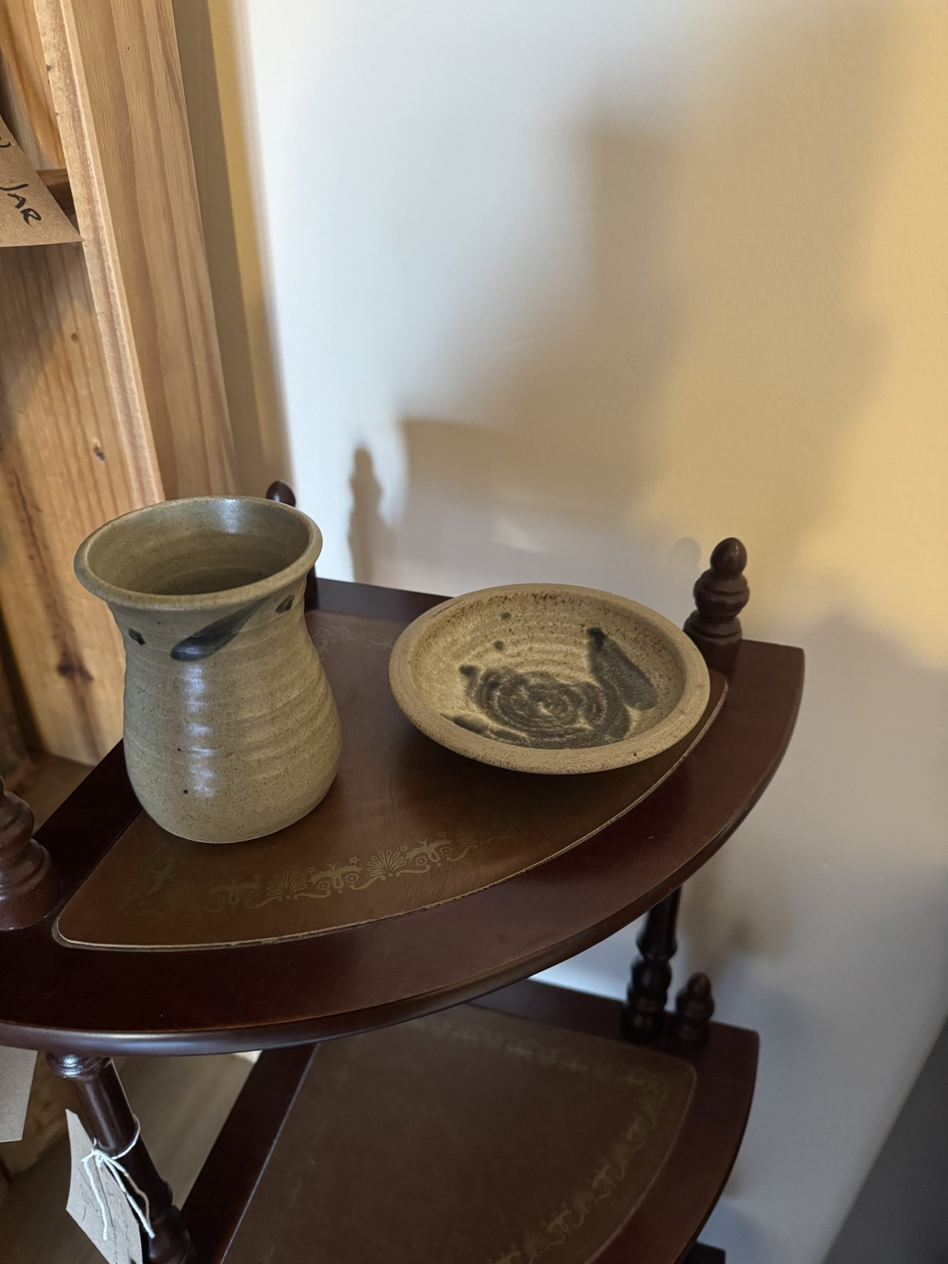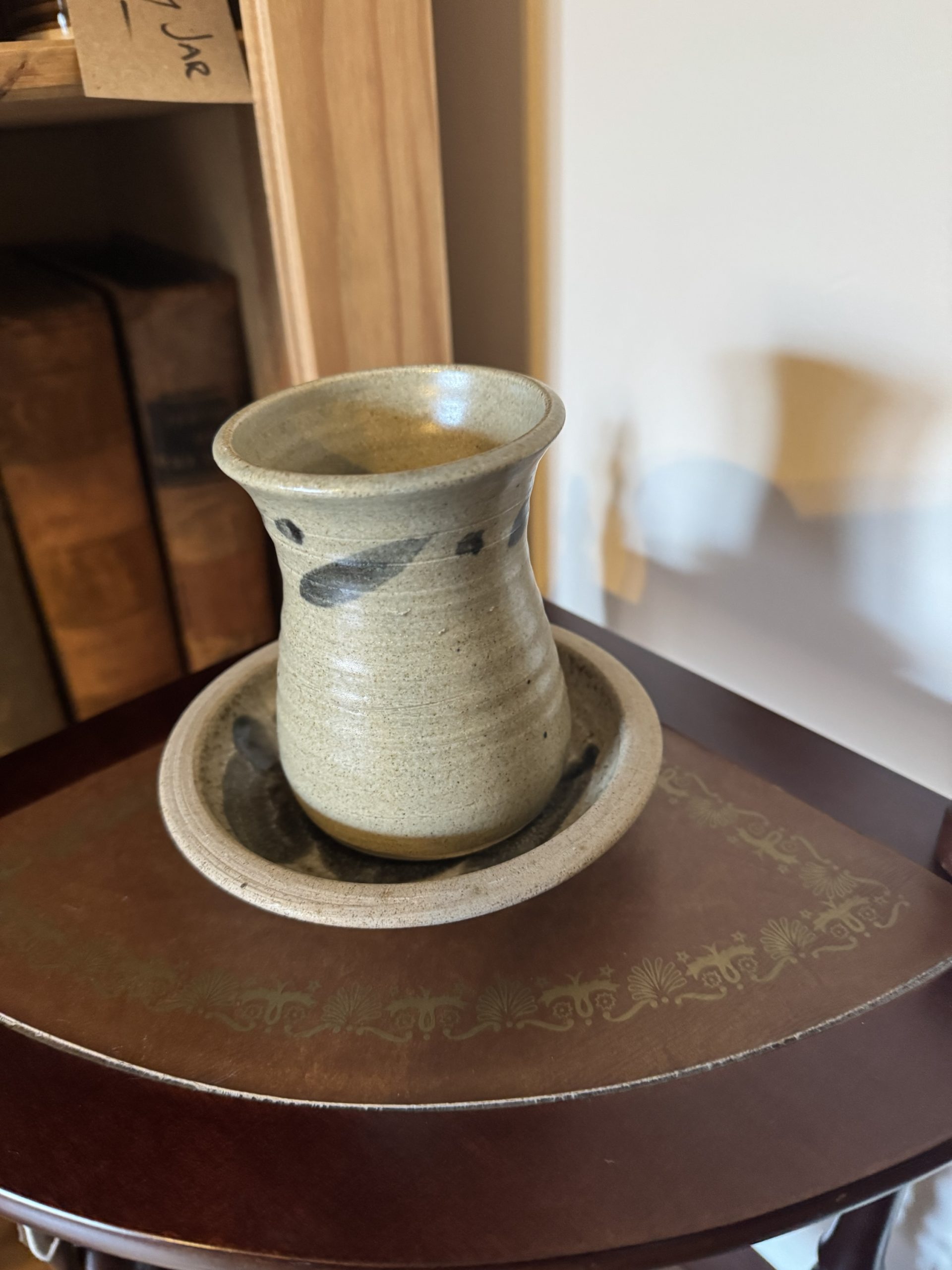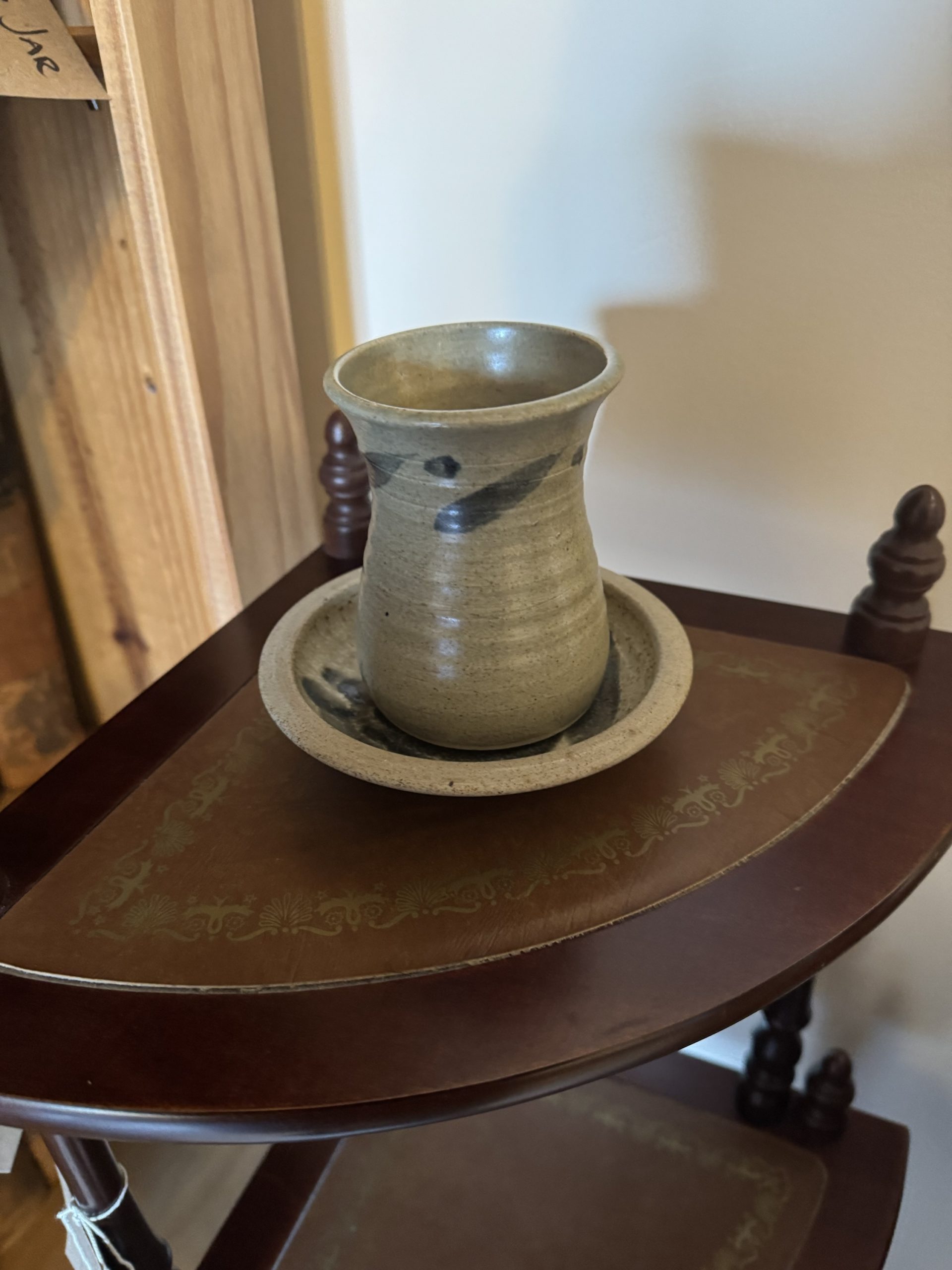 Mid 20th century hand made studio pottery creamer pottery leaf design creamer and matching saucer