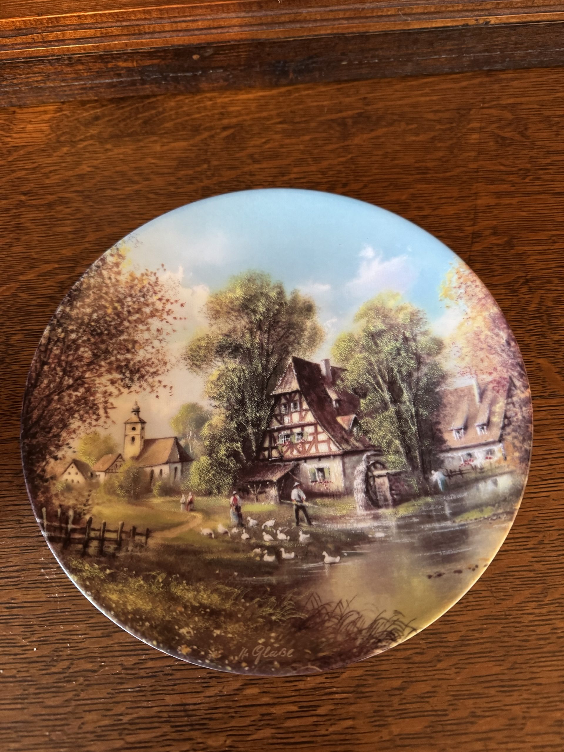Late 20th century Helmut Glabl decorative plate depicting a water mill scene