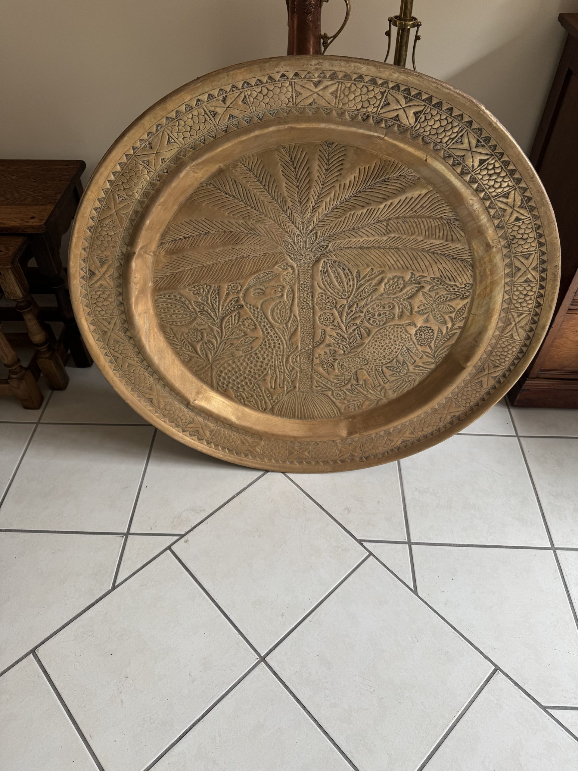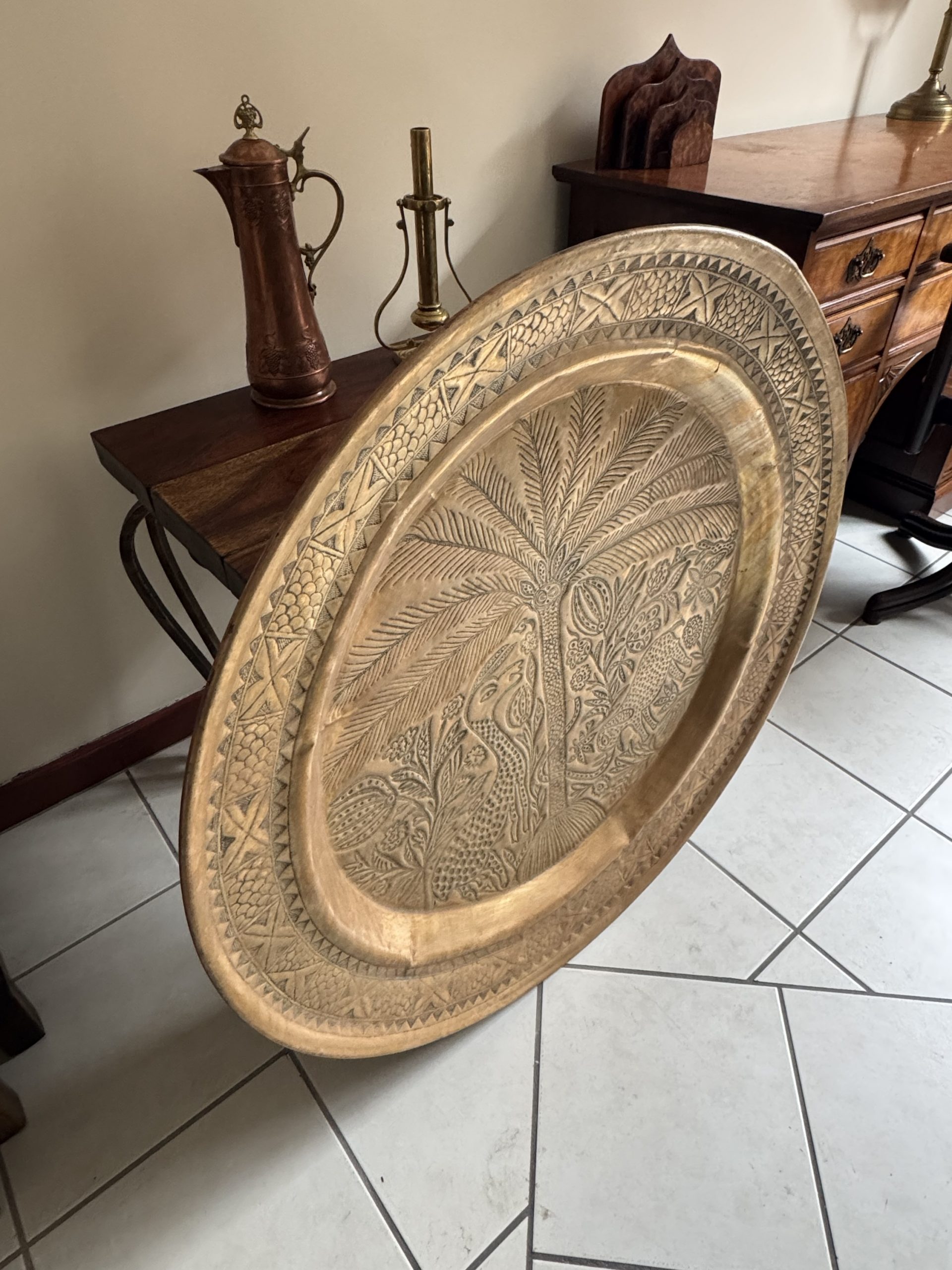 Middle Eastern large brass tray