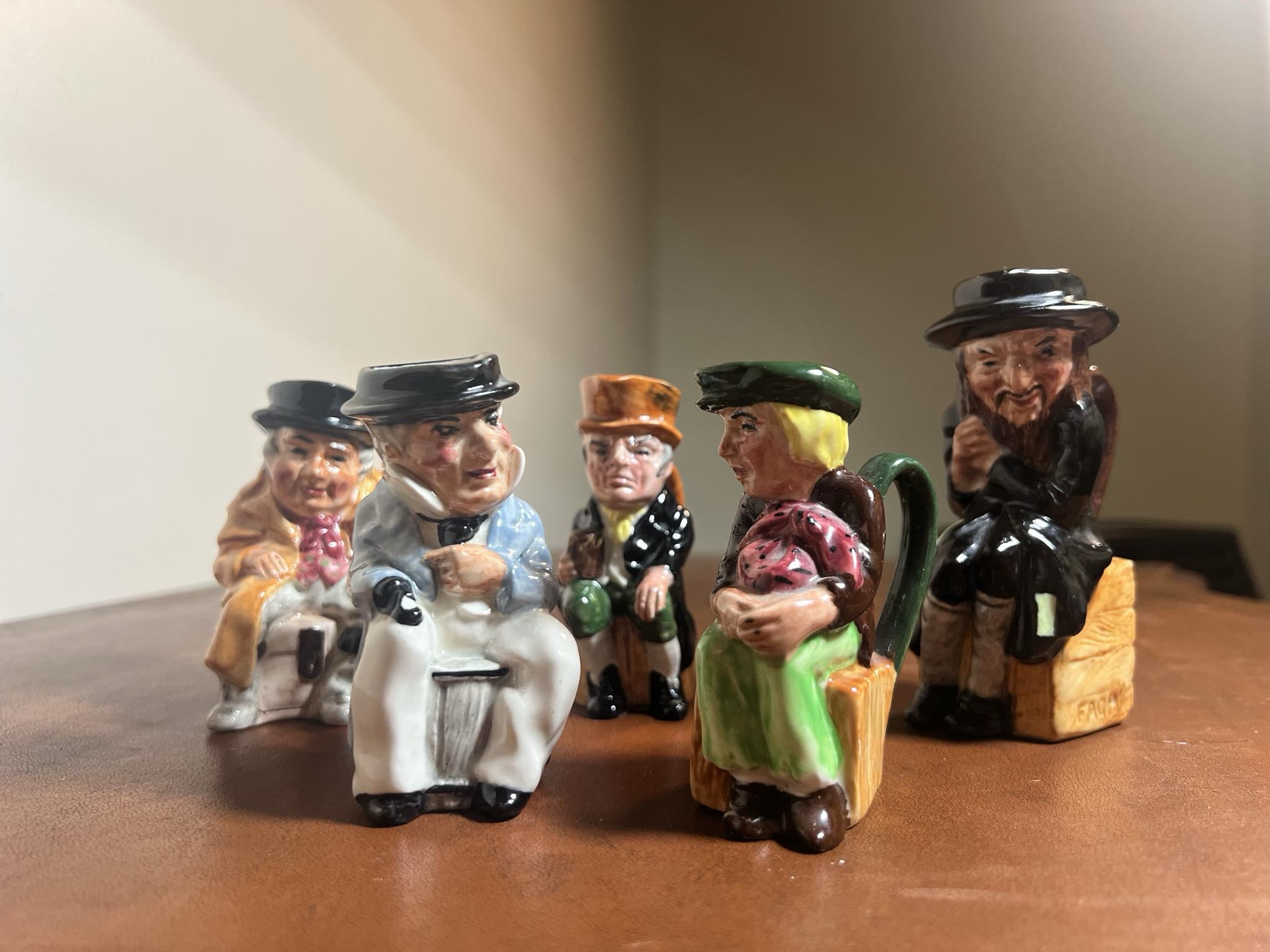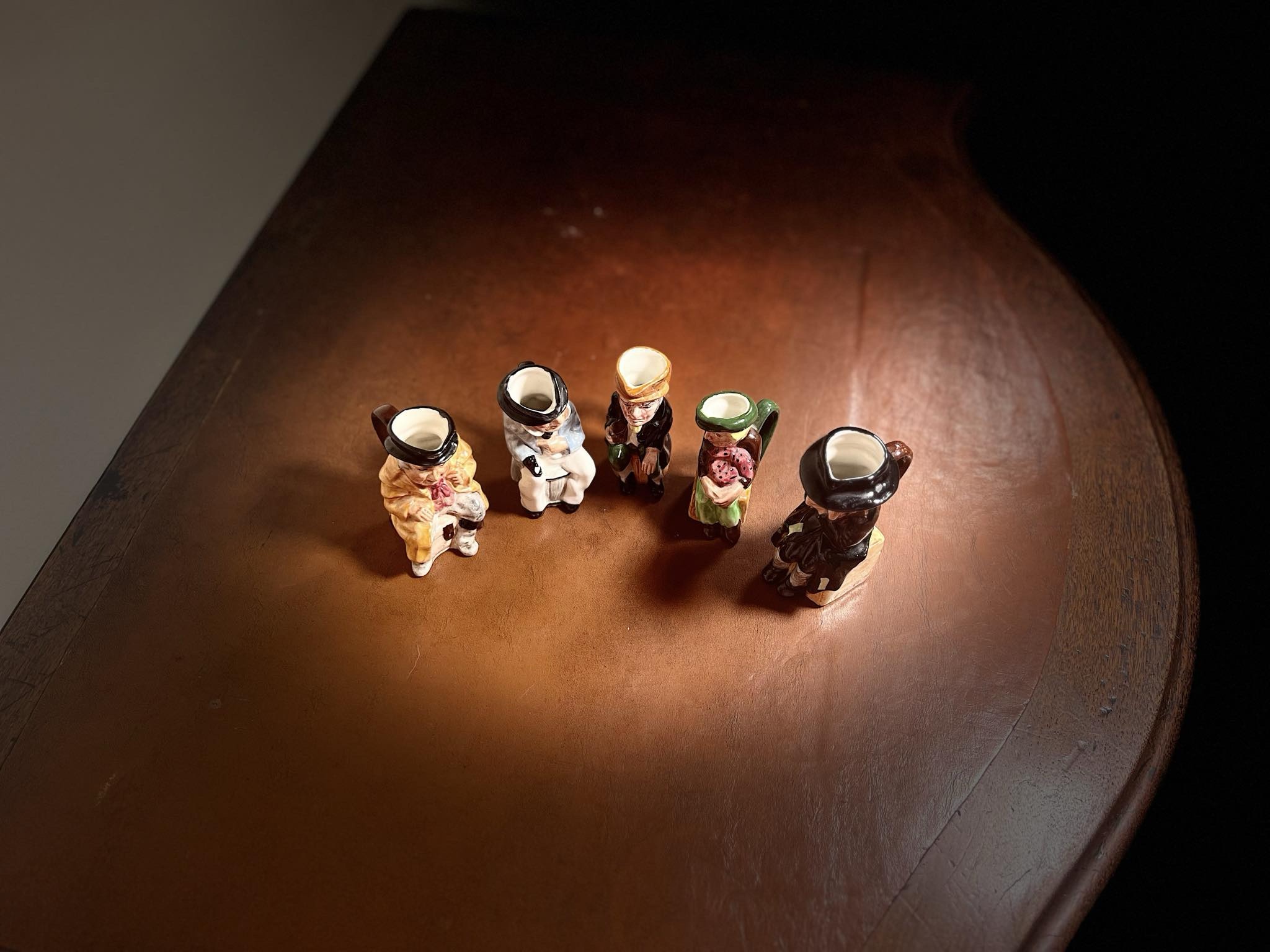 Set of 5 Antoine miniature Toby Jugs depicting characters from Charles Dickens classic tale Oliver Twist.