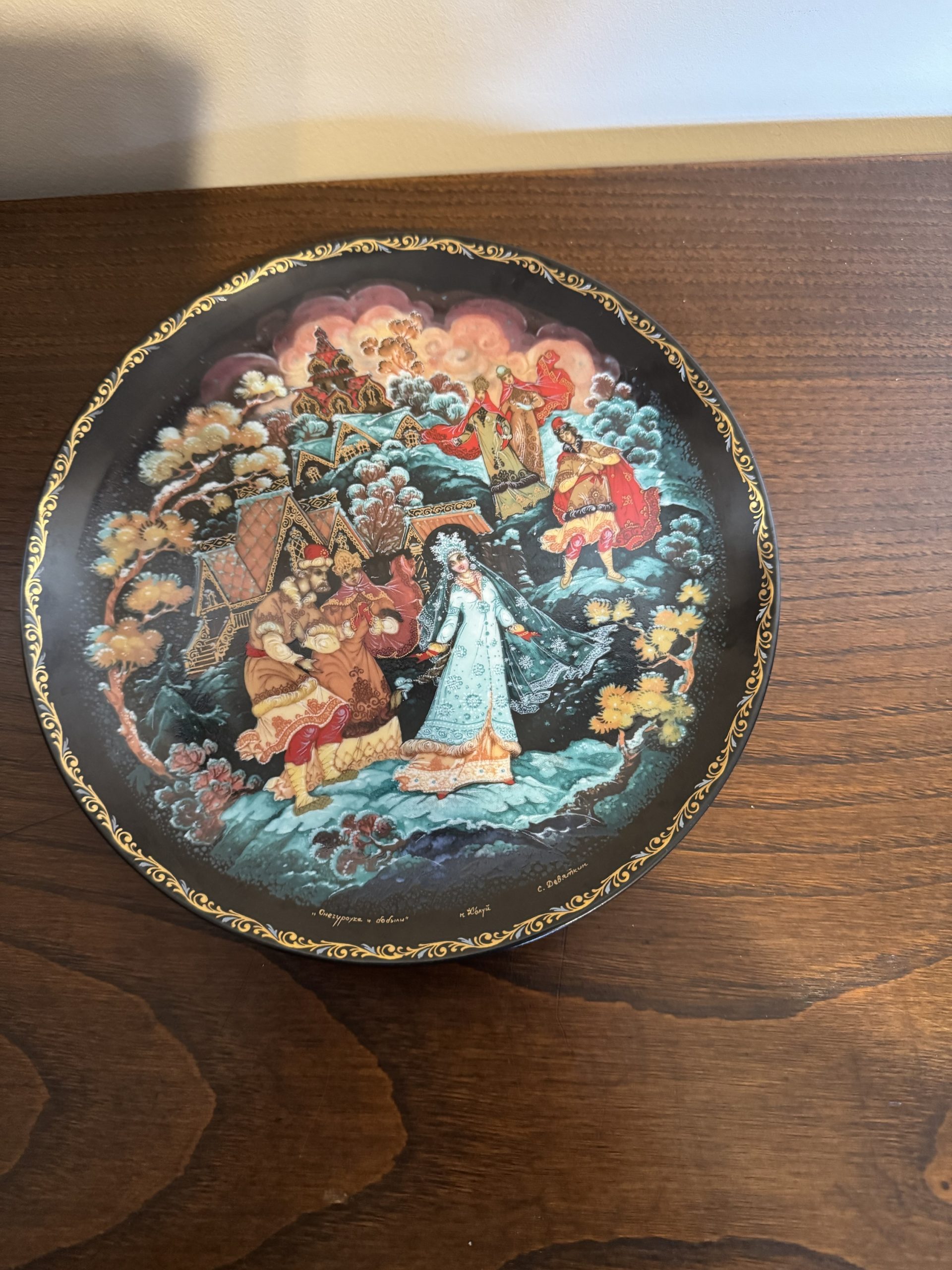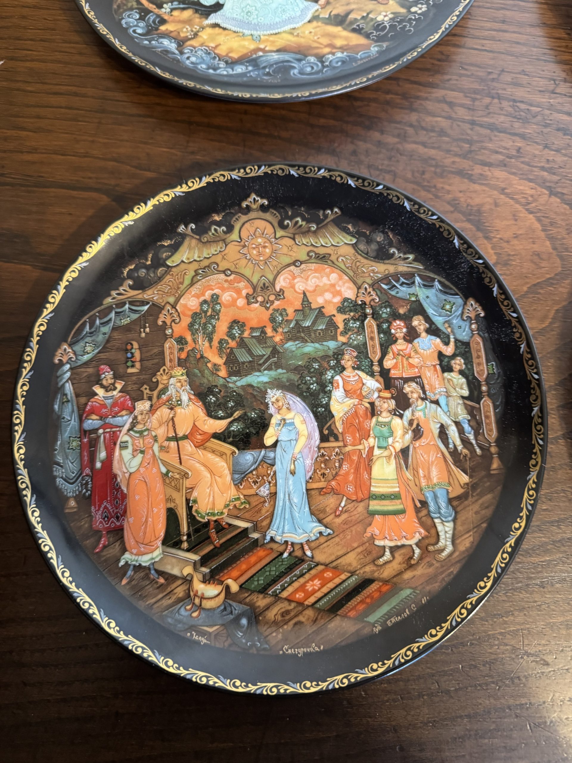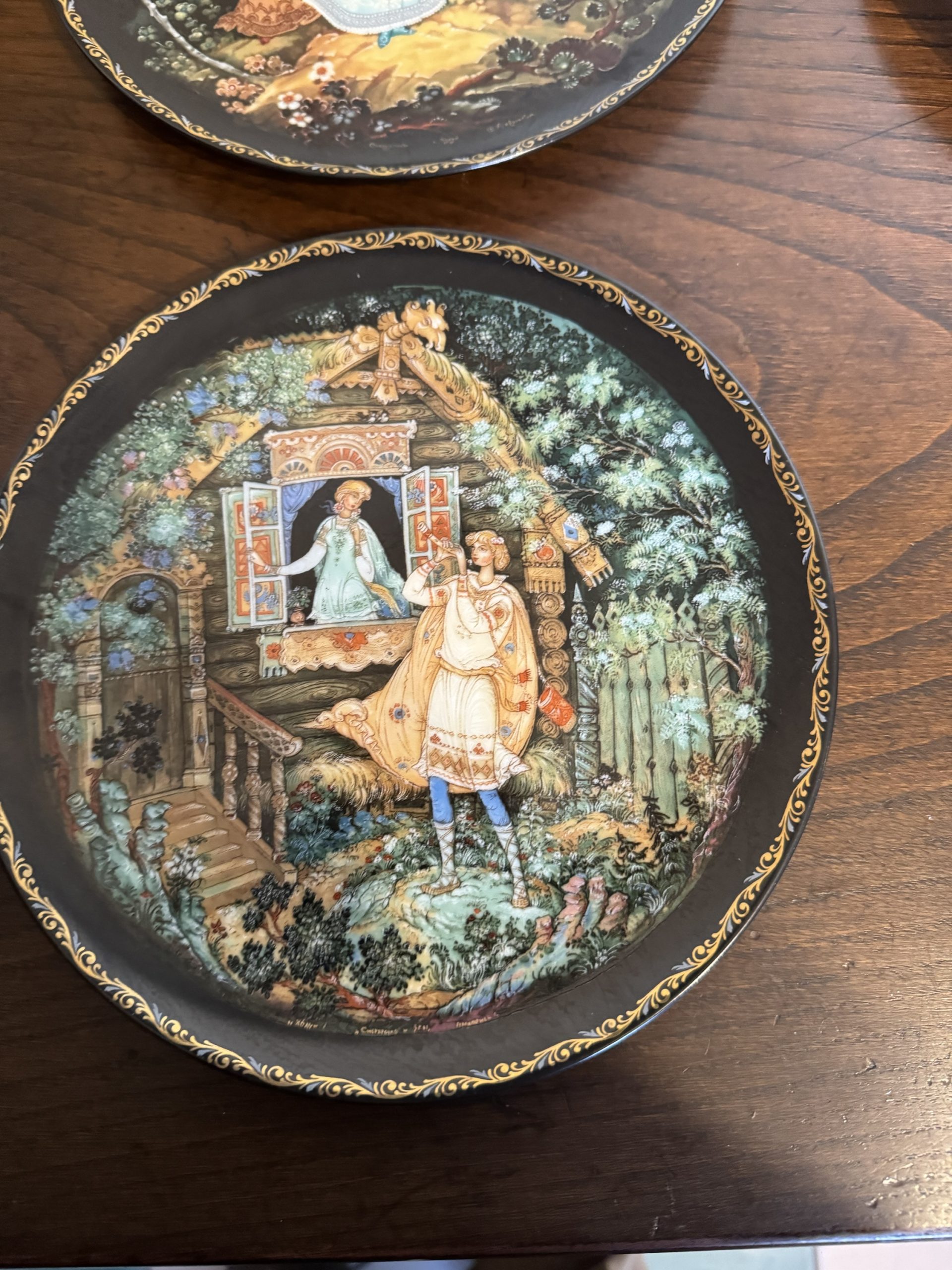 Five hand painted decorative collectors plates depicting various Russian Fairytales. Made in Russia 1980-1987.