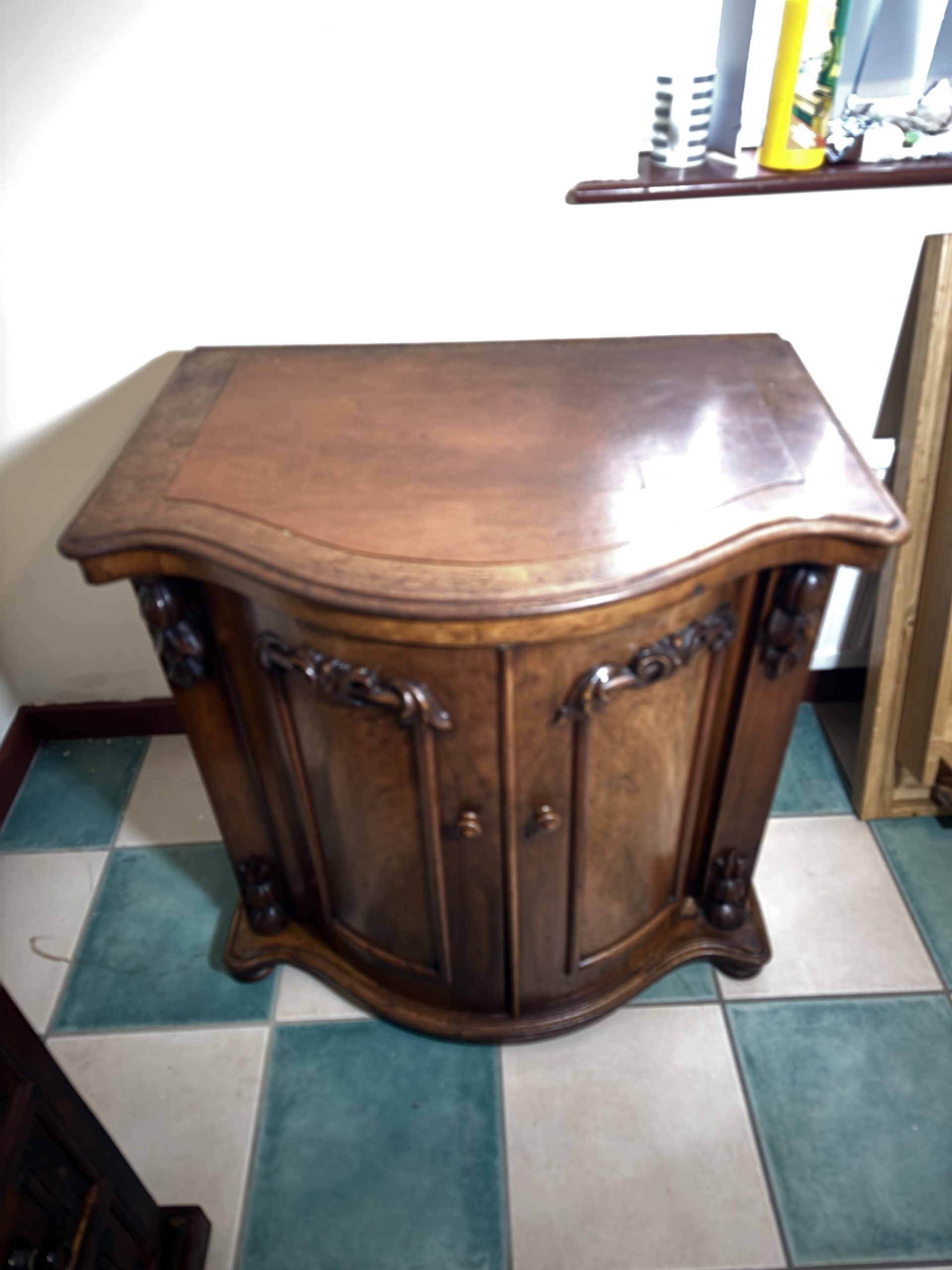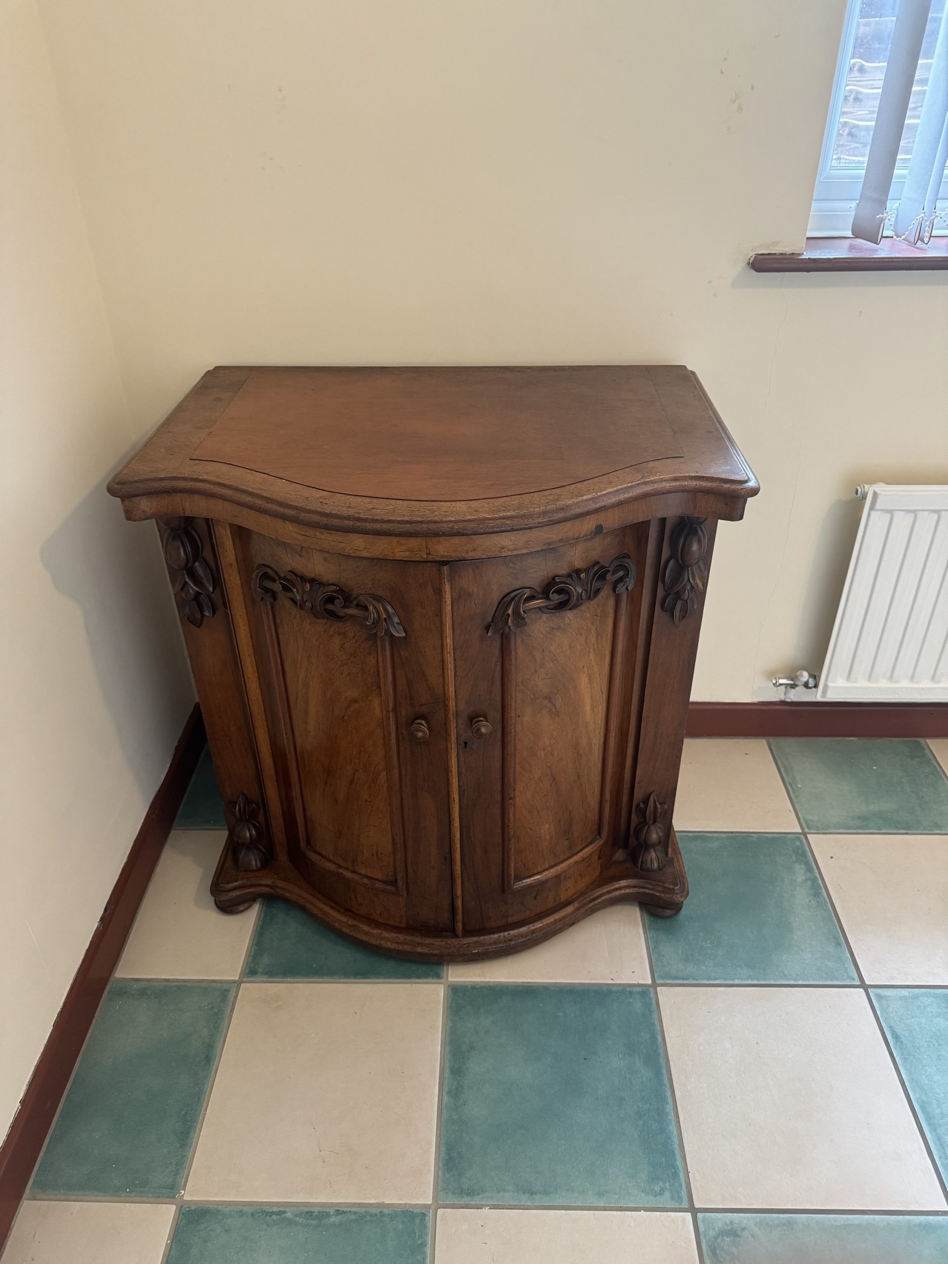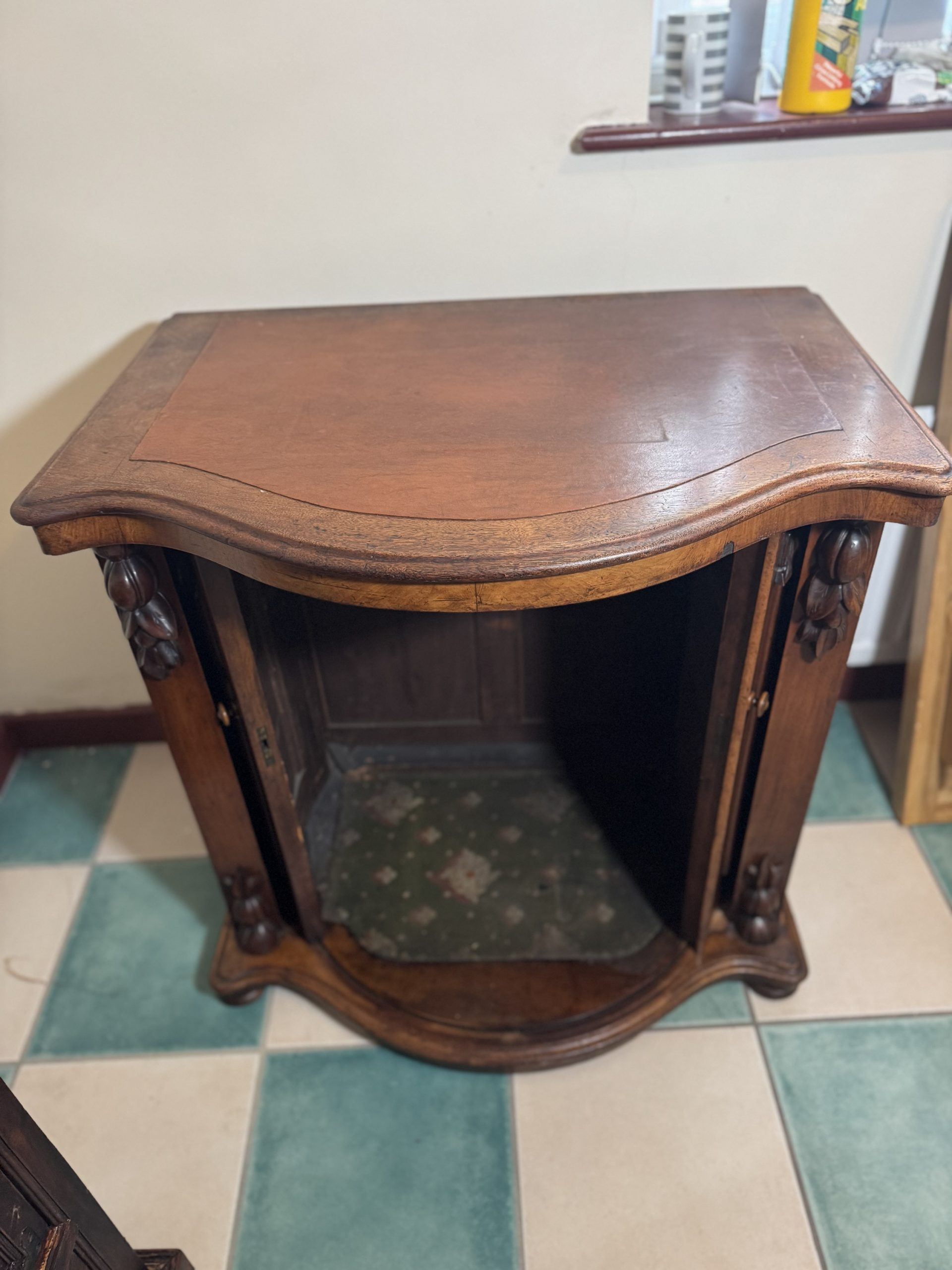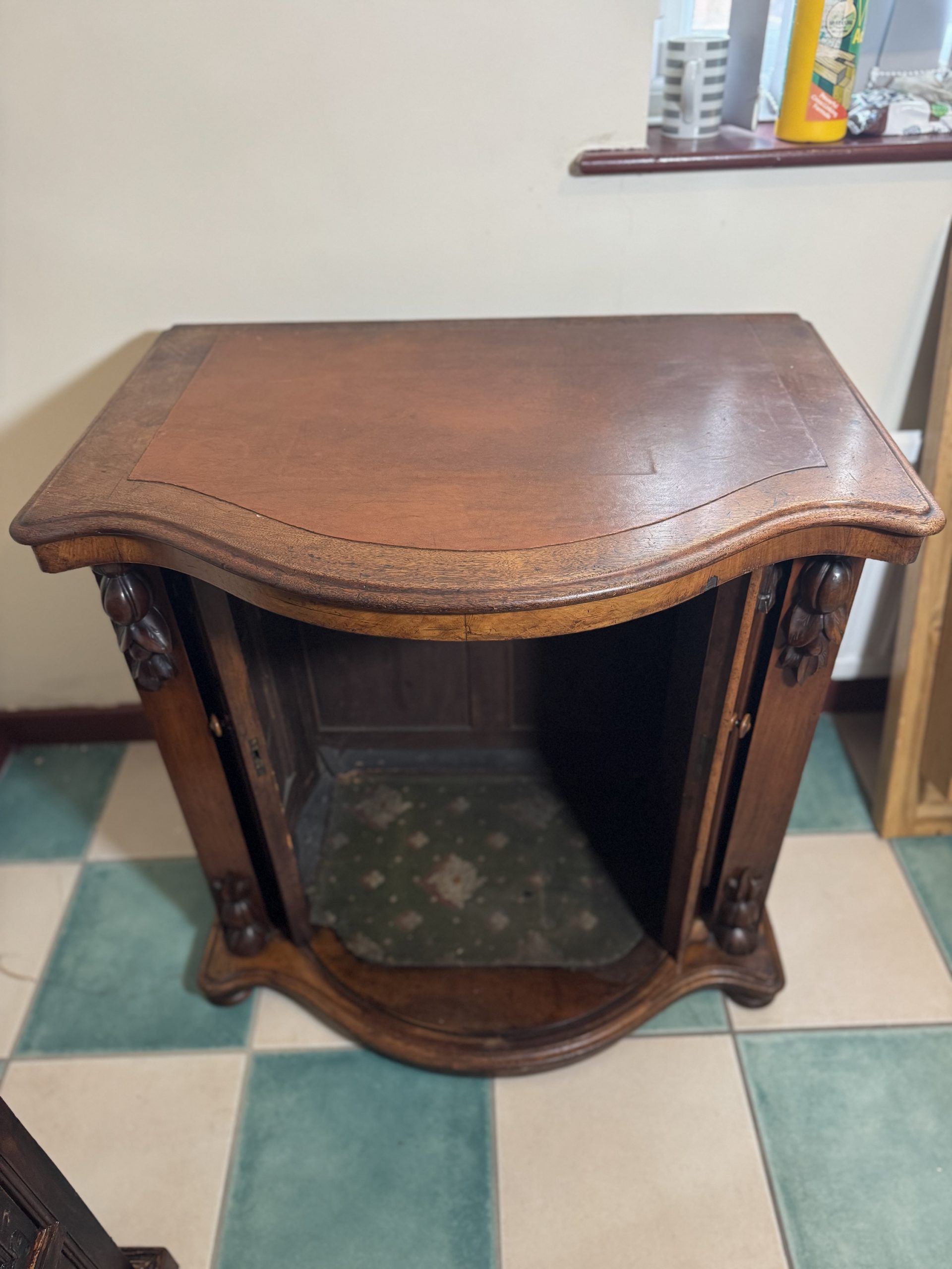 Victorian demilume half moon English cabinet/ desk with 2 x sliding doors to access bottom/ footwell