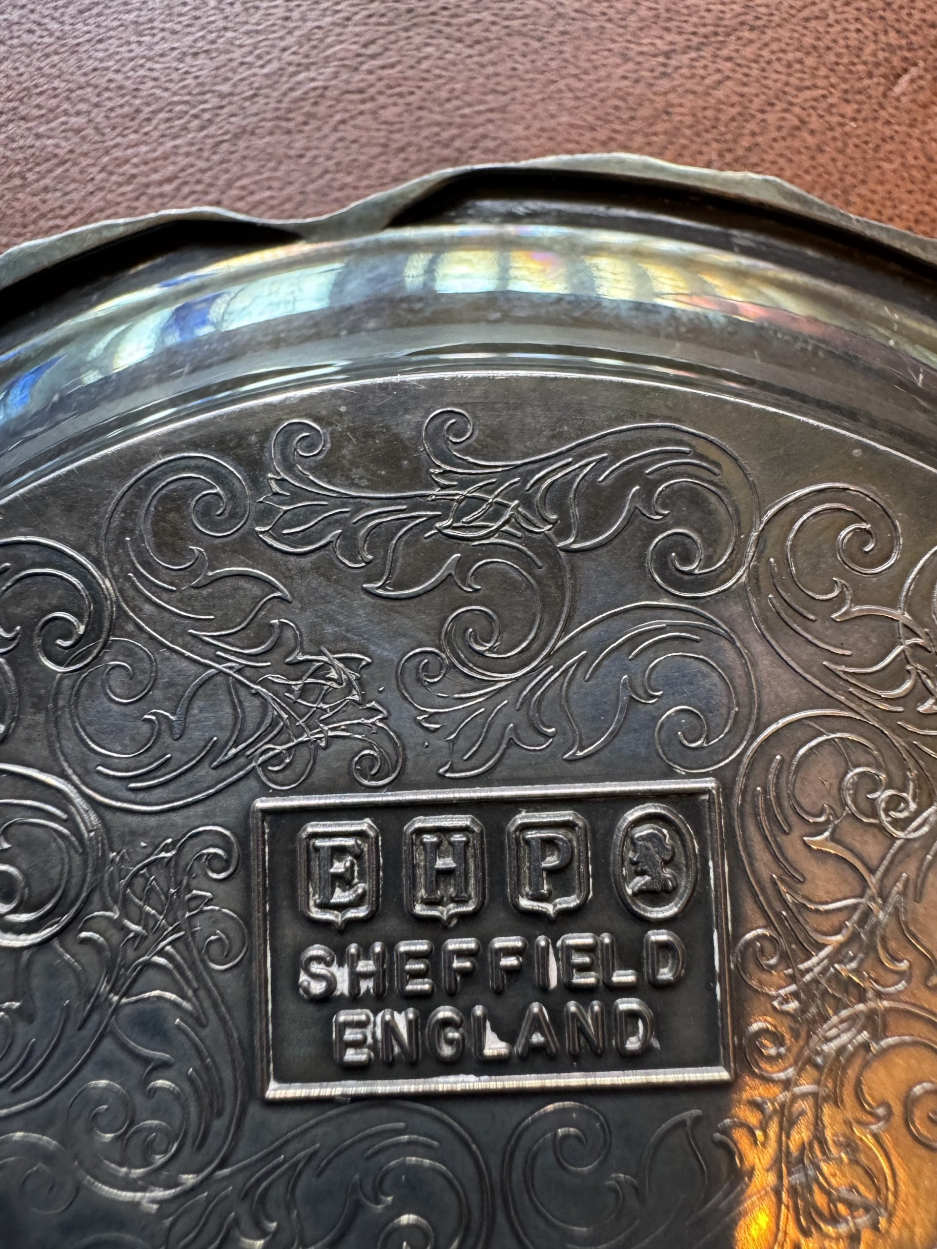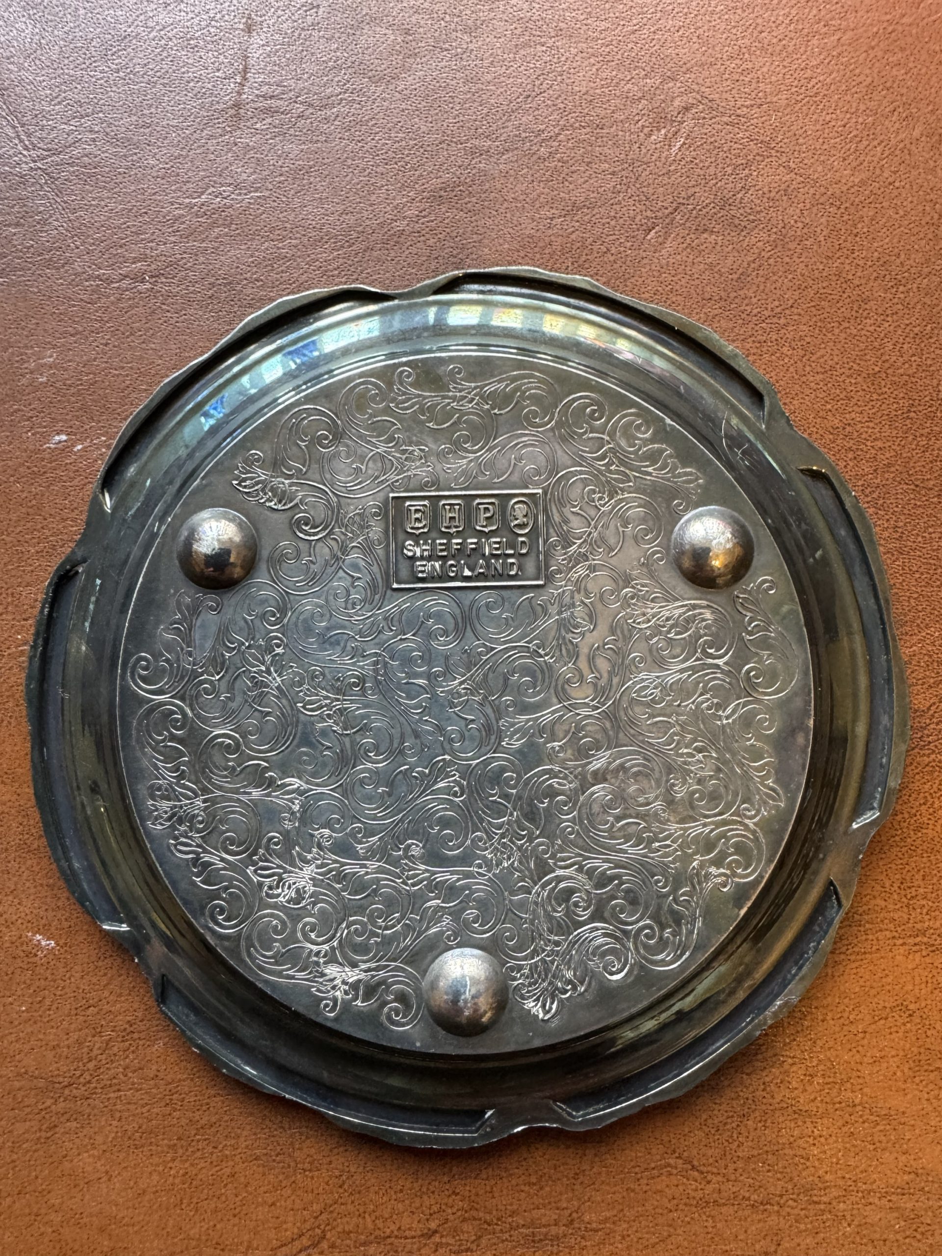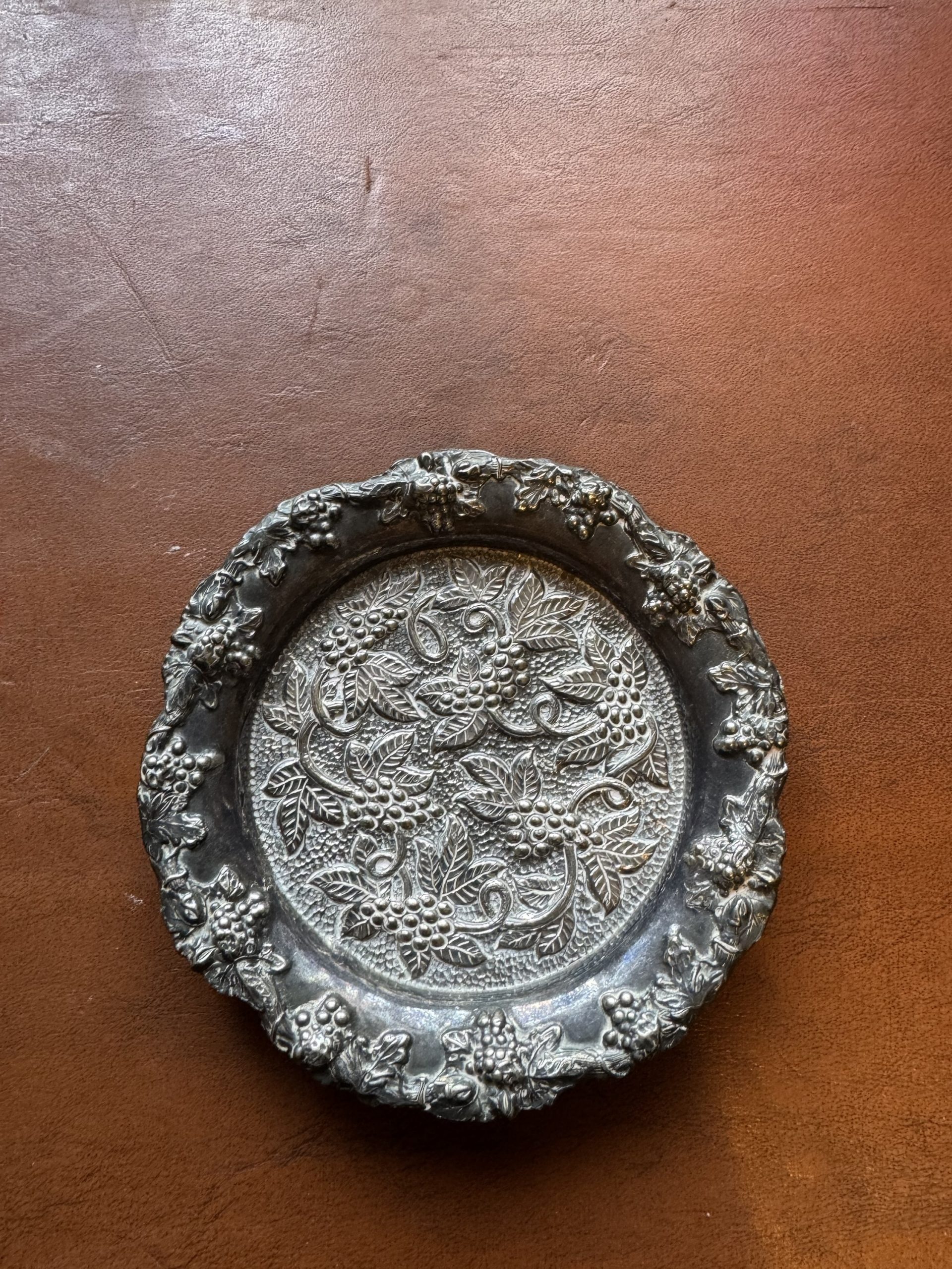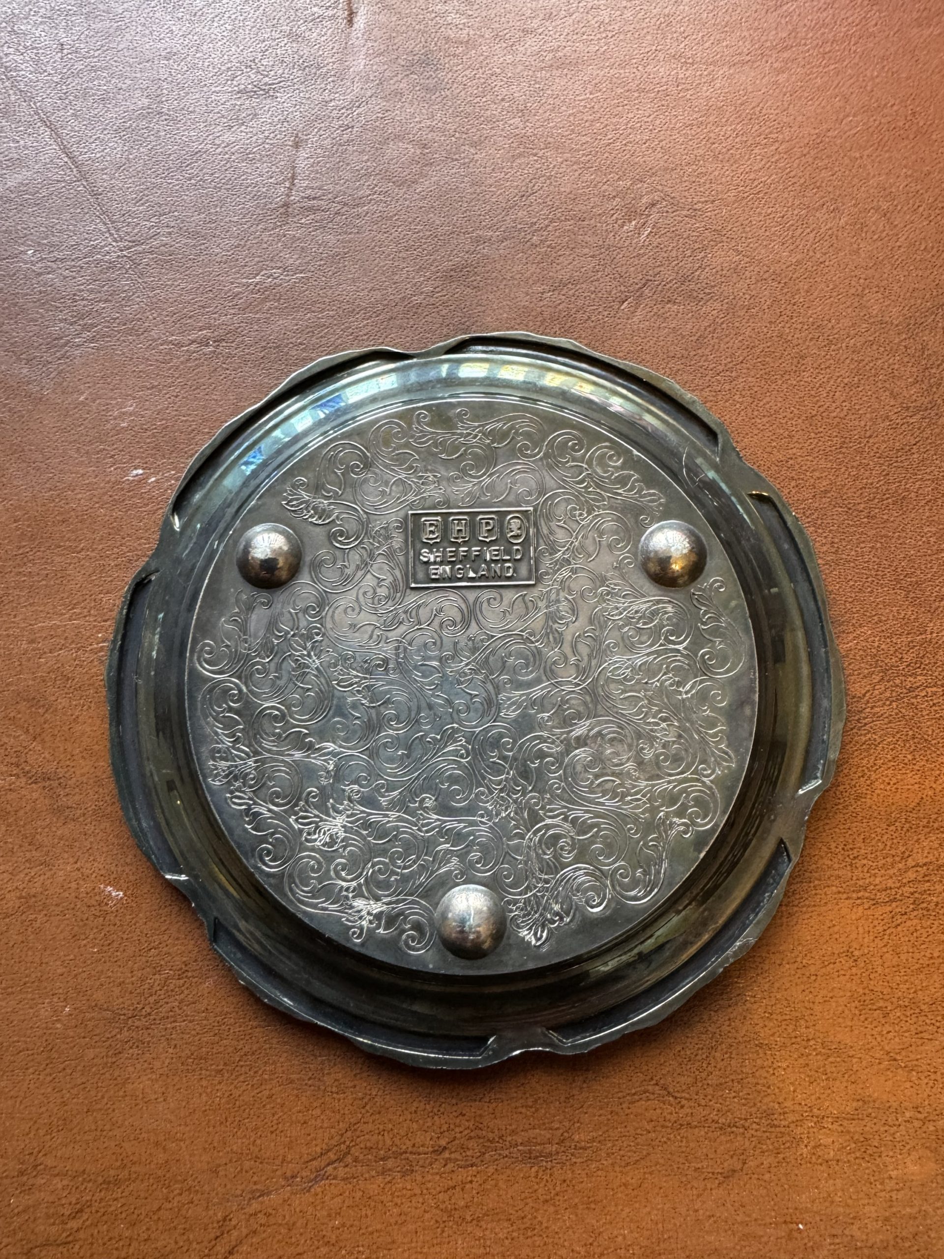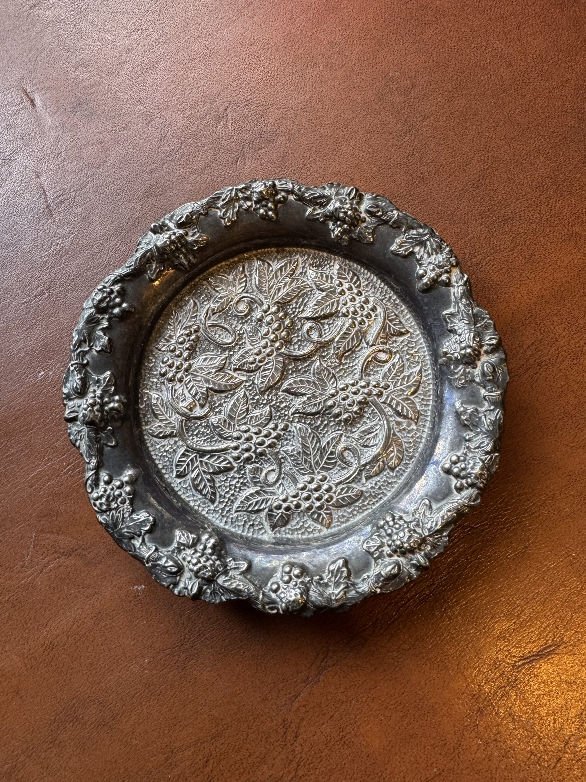 1930’s E.H Parkin & co Sheffield England silver plated wine coaster with embossed grapevine and cluster design