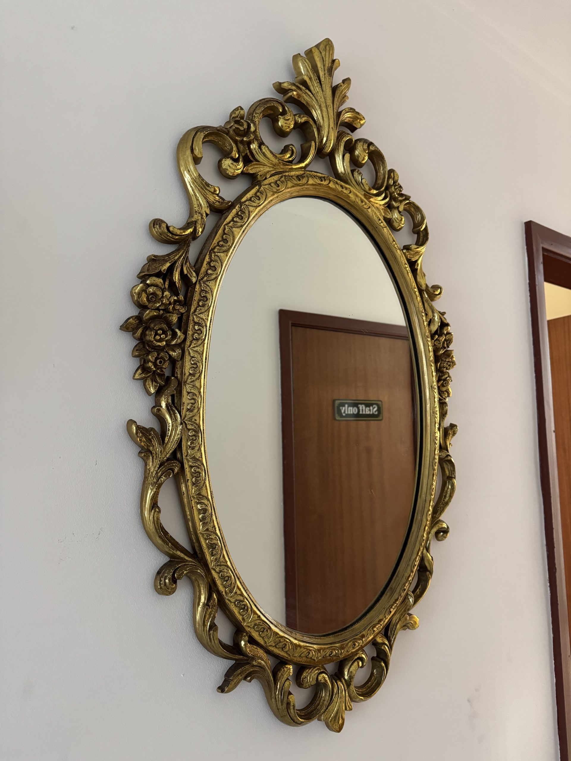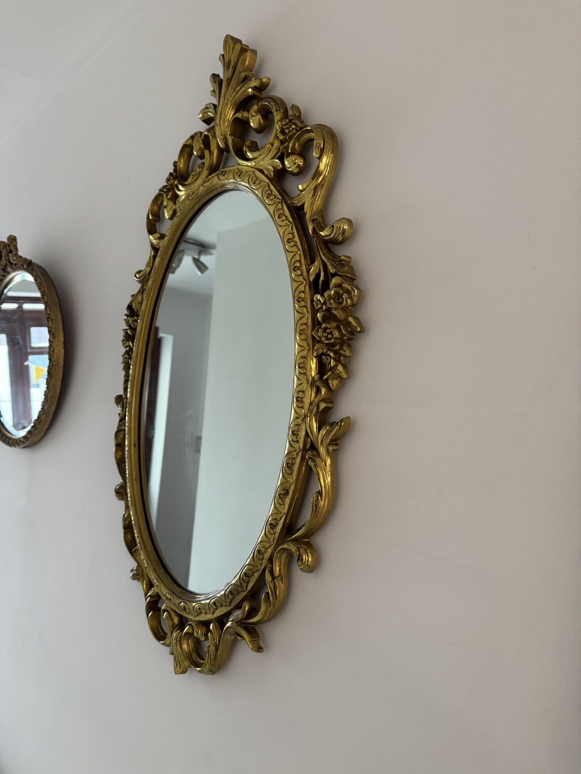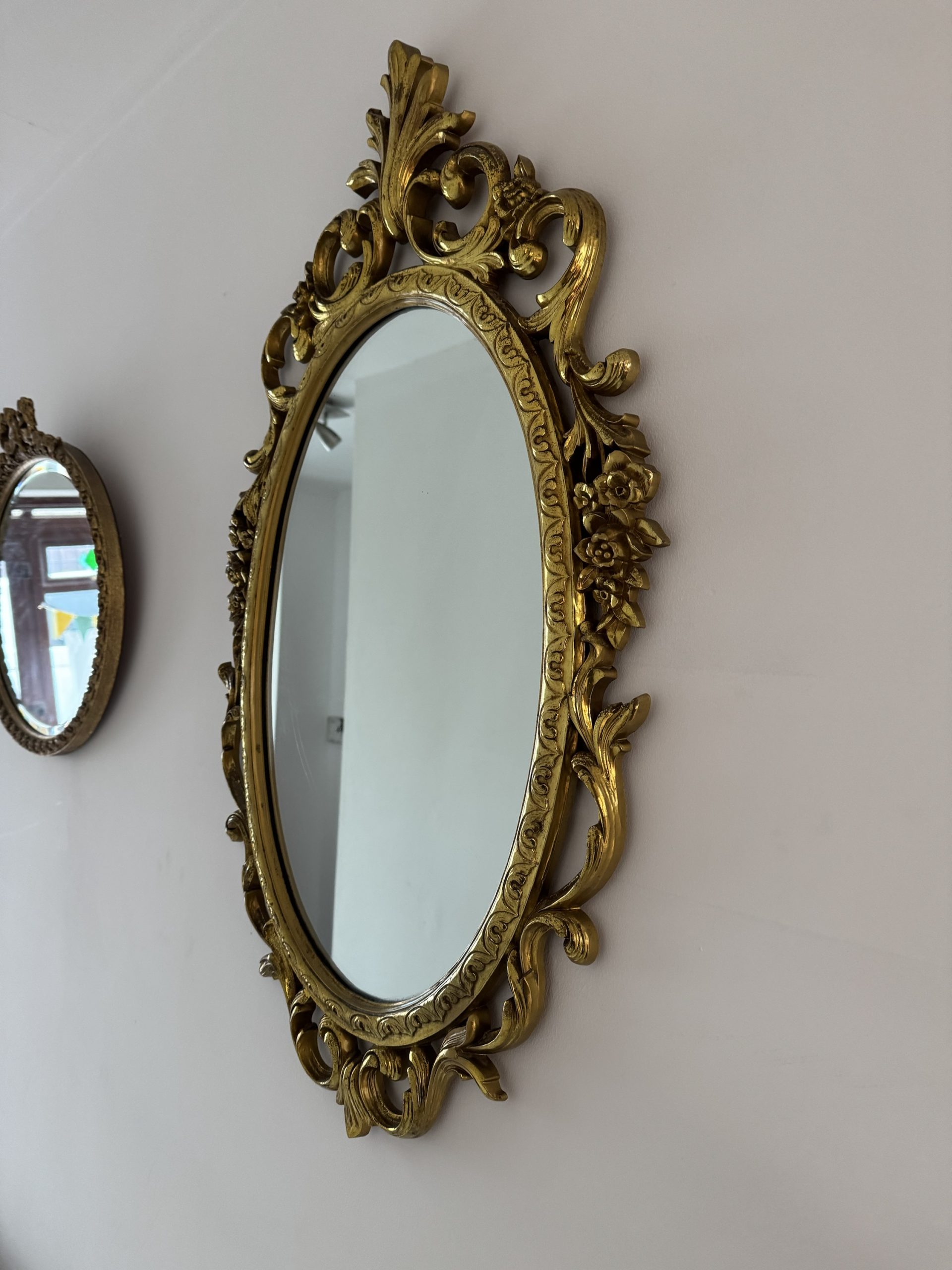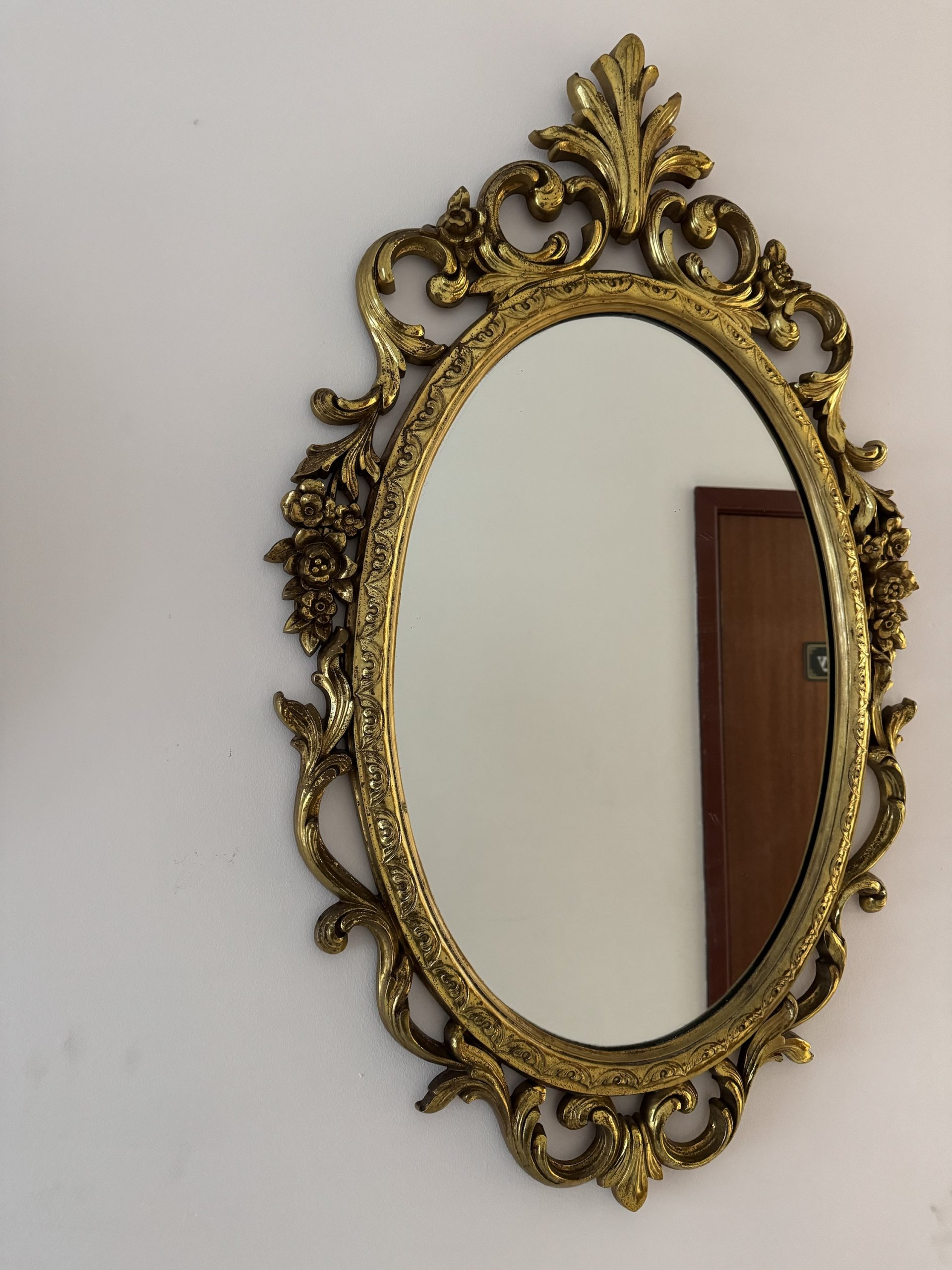 1940s-1950 Syroco Gilded decorative wall mirror. Country of origin USA