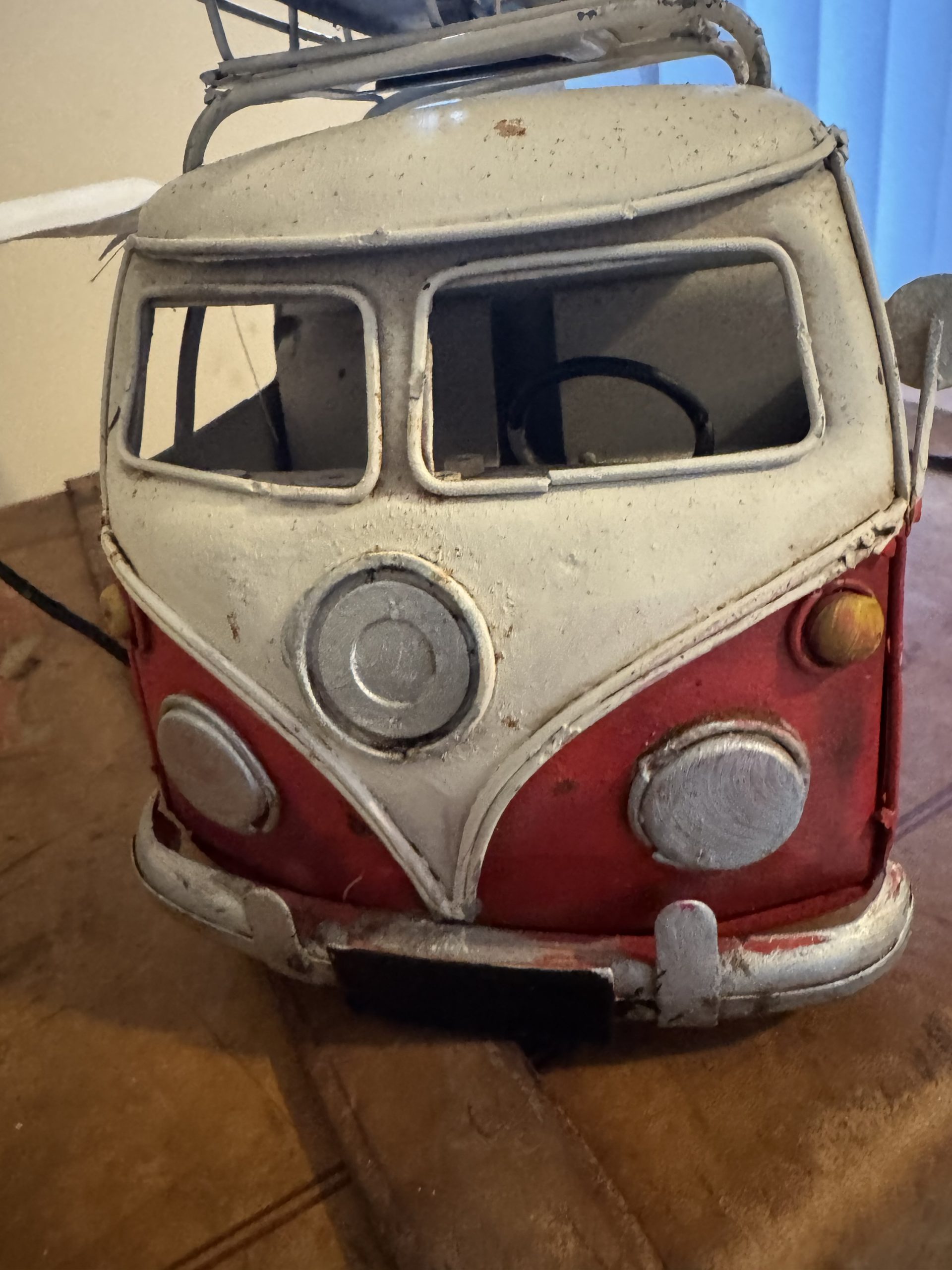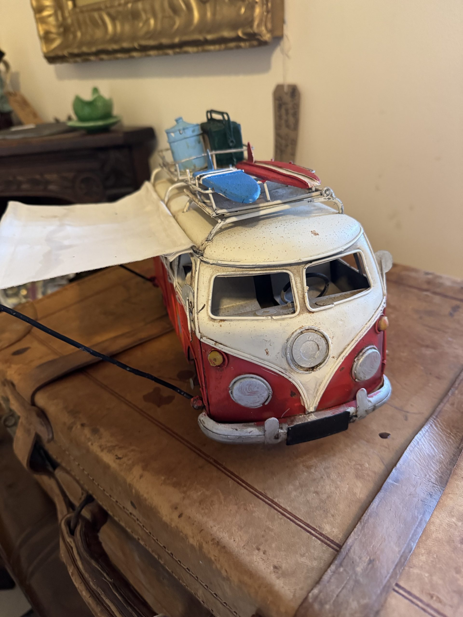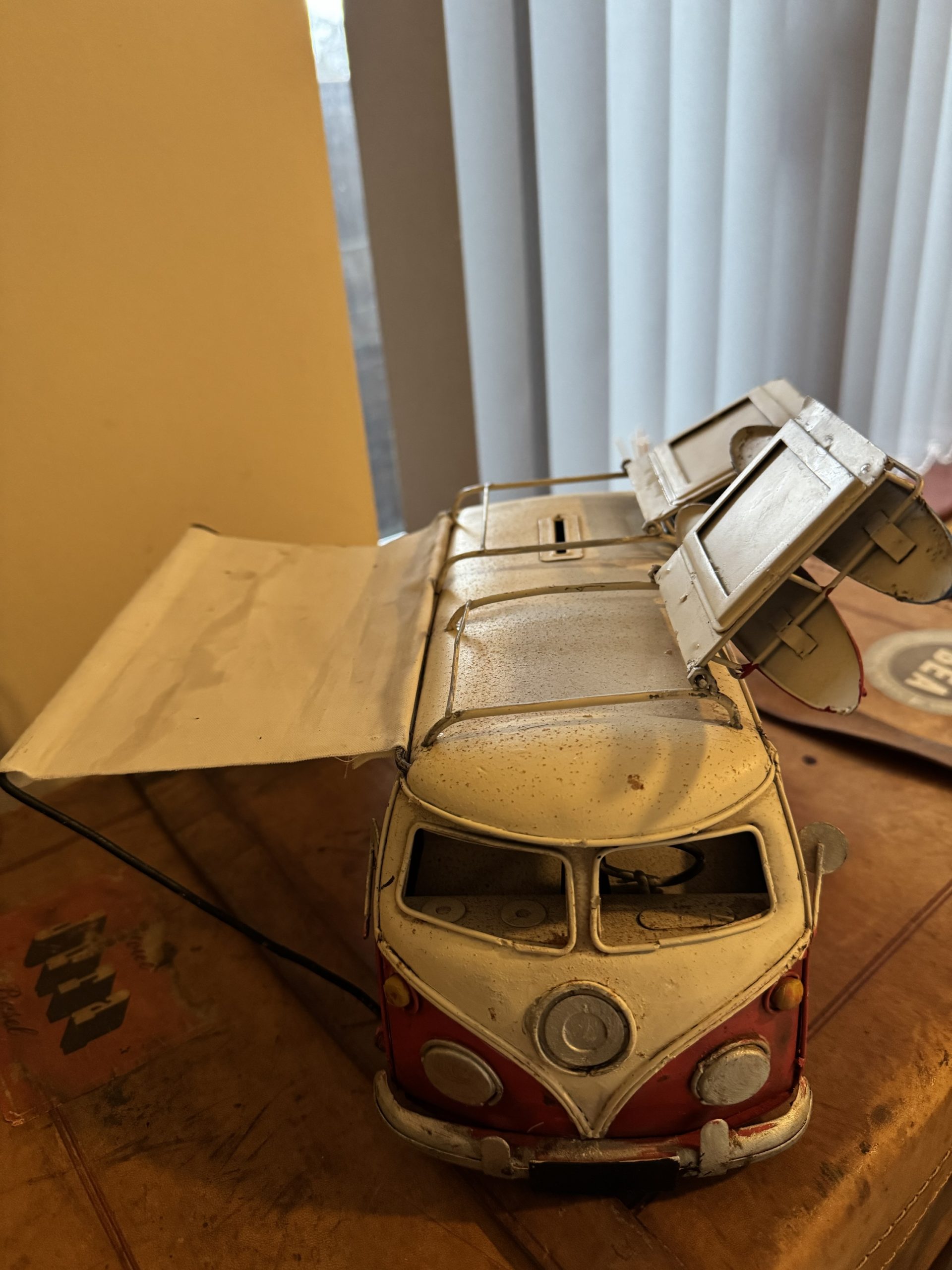 Vintage hand made tinplate of a rustic VW T1 Kombi camper van money box