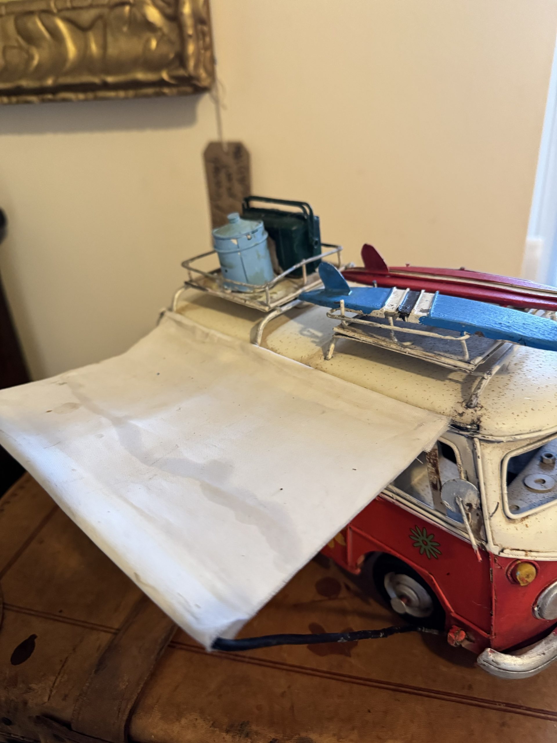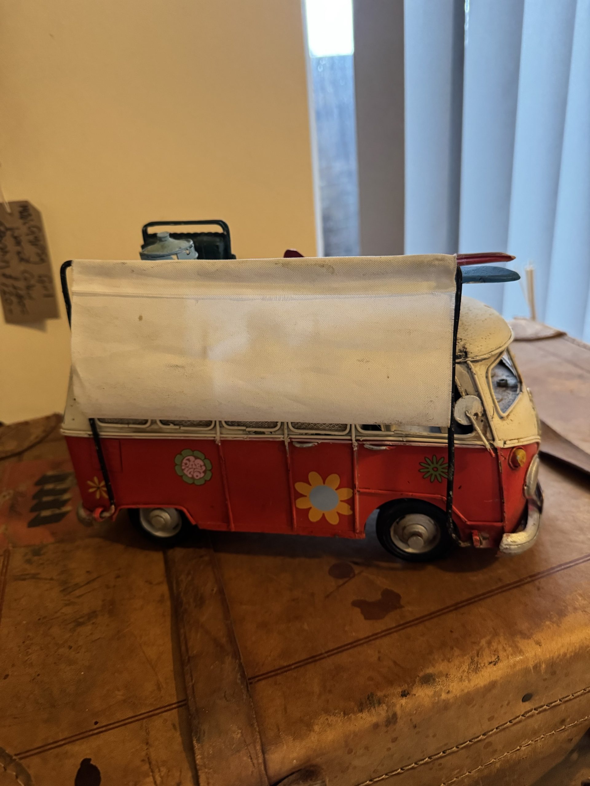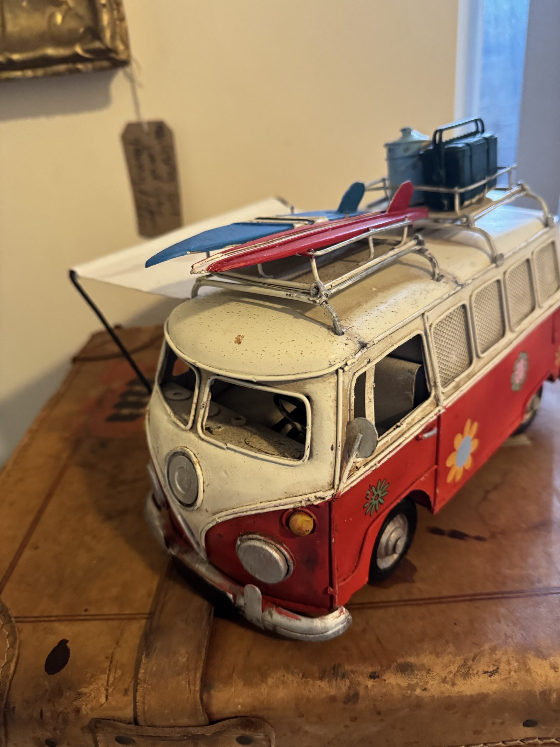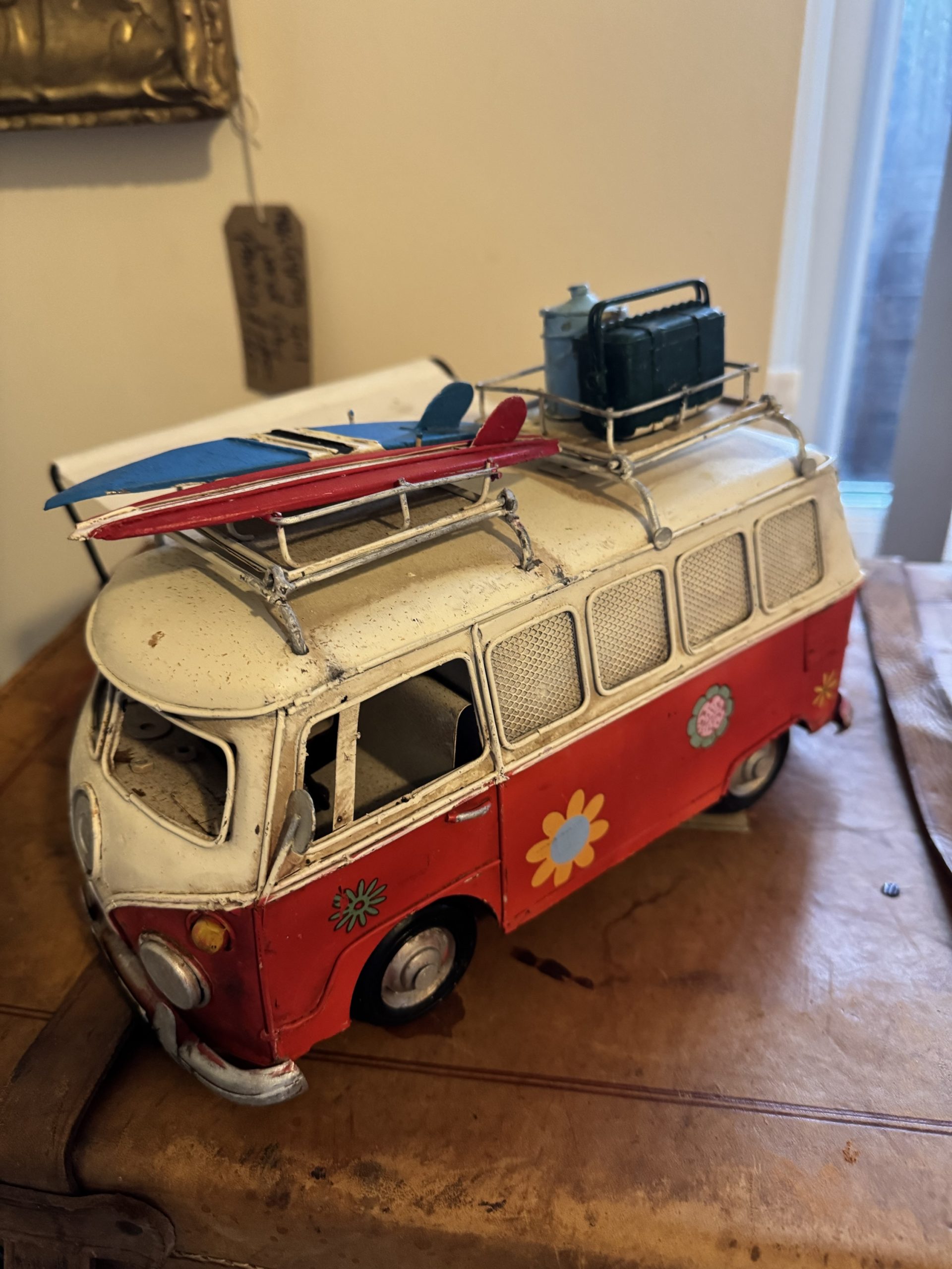 Vintage hand made tinplate of a rustic VW T1 Kombi camper van money box